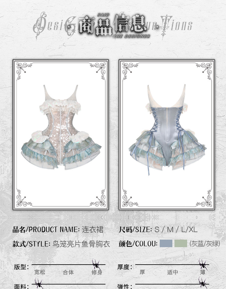 Оригинальное кровоснабжение ◆Зов сирены, тяжелая промышленность, поляризованное праздничное платье с рыбьей костью, медузой и пайетками на берегу моря