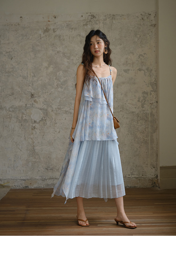 MISHOW юбка из тенселя с акварельным цветочным принтом, многослойное лоскутное платье с рюшами в праздничном стиле