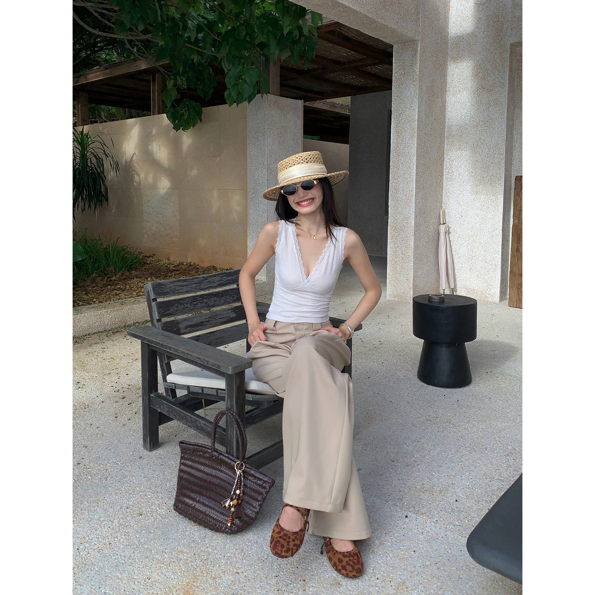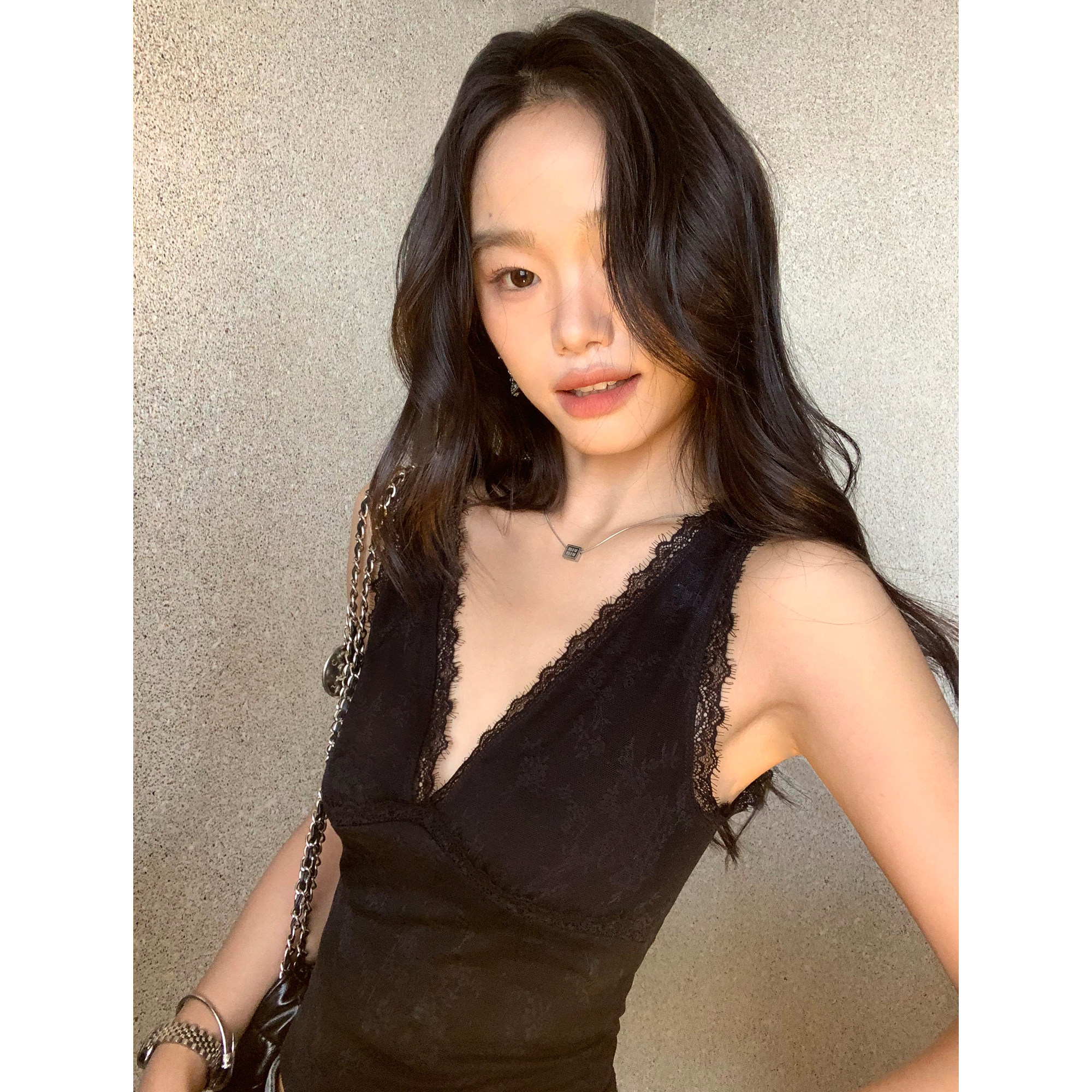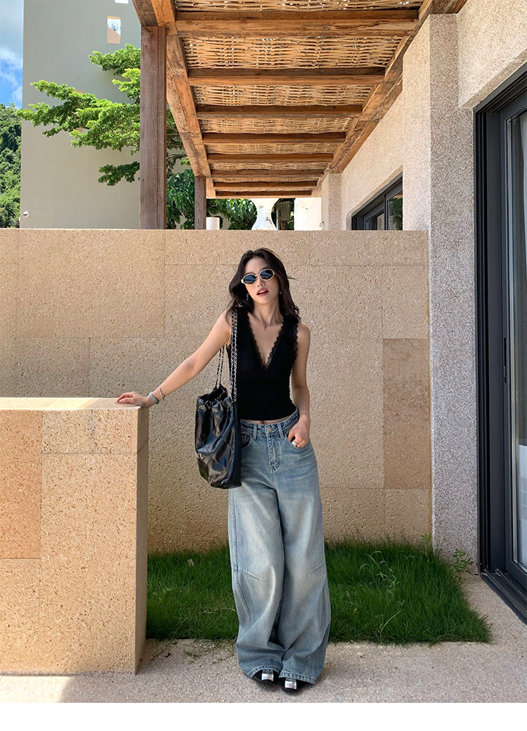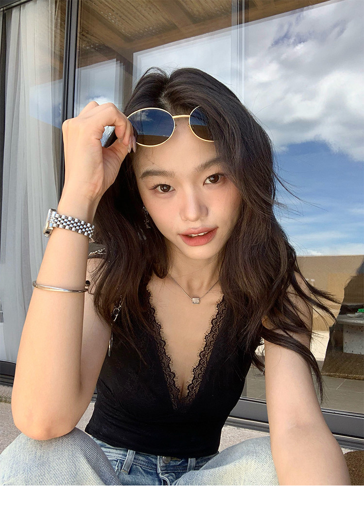 pusumede Кружевная сексуальная майка топ без рукавов, V-образный вырез