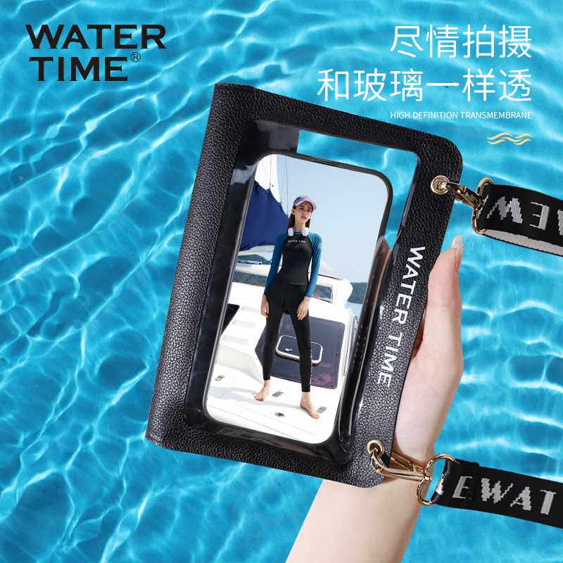 Водный сенсорный экран мобильный телефон водонепроницаемый пакет на открытом воздухе в горячих источниках и делает фото уплотнения и водонепроницаемого плавания.