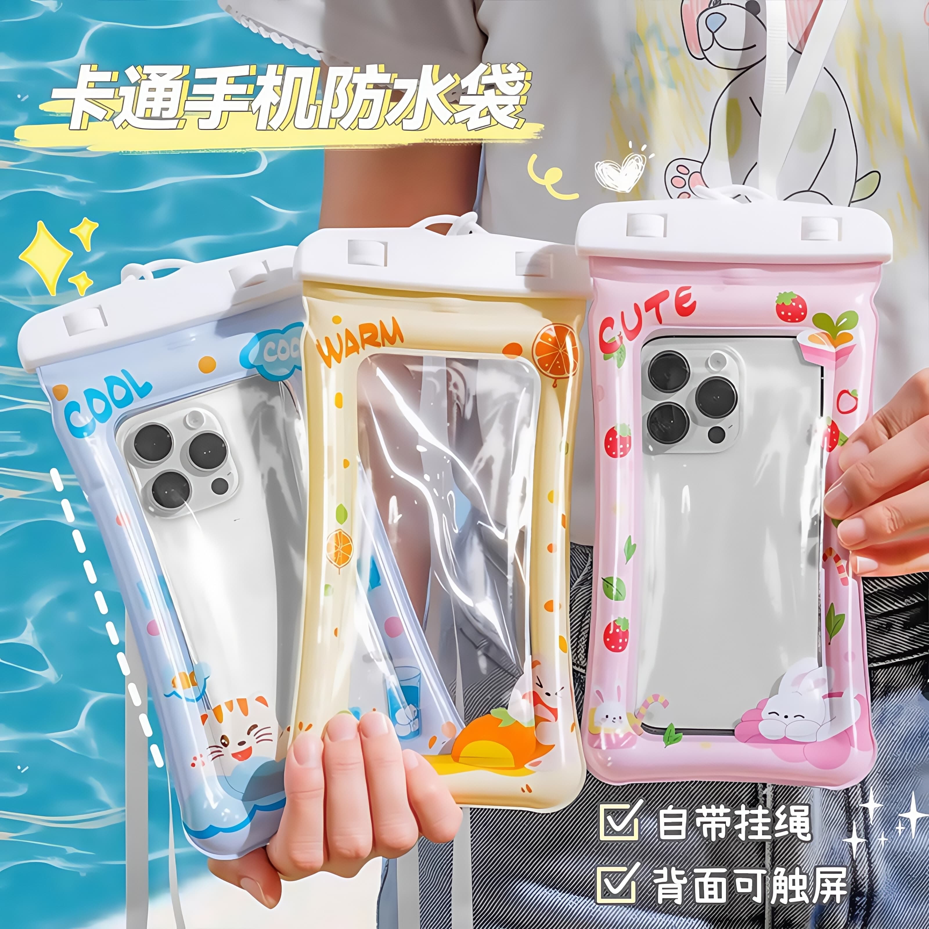 - Подушка безопасности, защита мобильного телефона, непромокаемая сумка, ремешок, цвет, 3 шт