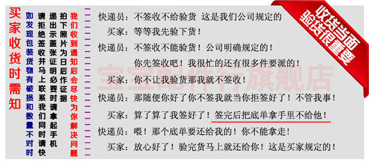 При сборе товара обязательно откройте проверку.Если курьер просит подписать сначала, прежде чем вы сможете открыть его, оставьте некоторое время, чтобы открыть коробку на некоторое время.Если у вас есть какие -либо вопросы, пожалуйста, свяжитесь с нашим магазином вовремя, чтобы решить его.Если вам разрешено собирать других, вы также должны разобрать и подписать его, чтобы защитить свои собственные интересы, потому что вы обеспокоены тем, что жестокая транспортировка экспресс -доставки будет повреждена, иначе, как только квитанция будет подписана, грузовая компания, как правило ответственный, и мы не можем сделать это за вас.Компенсация.
