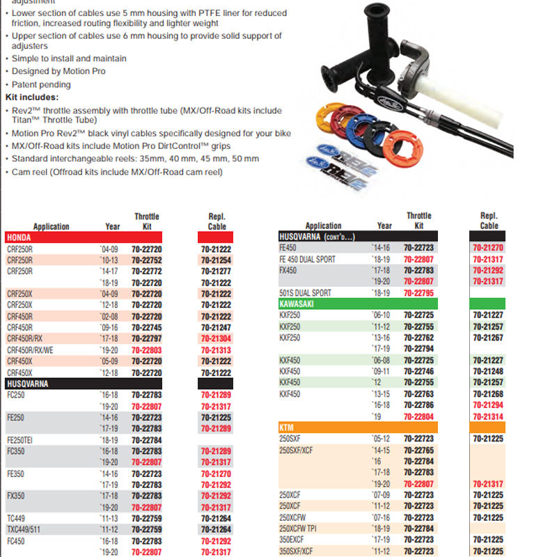 - Motion Pro схватил набор (Street/Road Racing Kit: Roadcontrol™Grip, MX /OFF -HOARD KIT: DIRTCONTROL™Ручка)