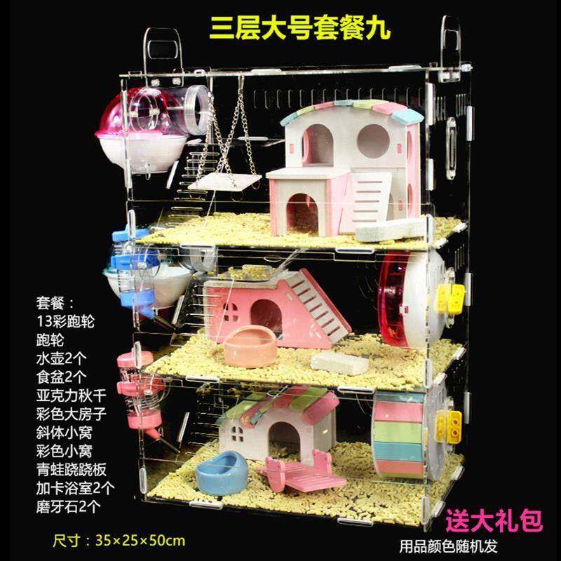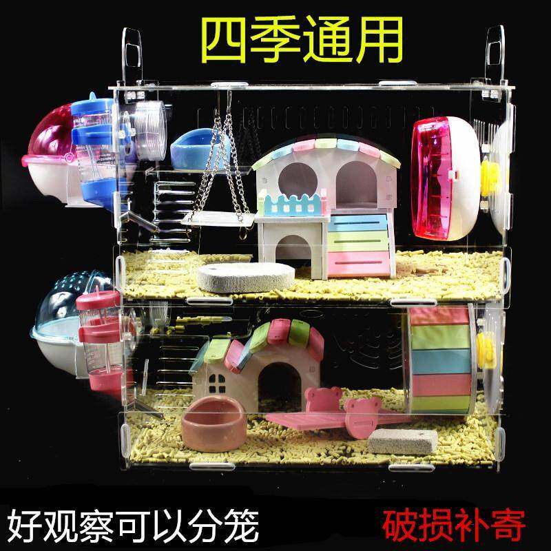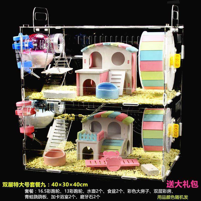 Новая клетка для хомяка два гнезда Большой дом с двойным ванной комнатой интегрированные двойные цветные набор цветов и шлифовальный зубной, многослойный многослойщик