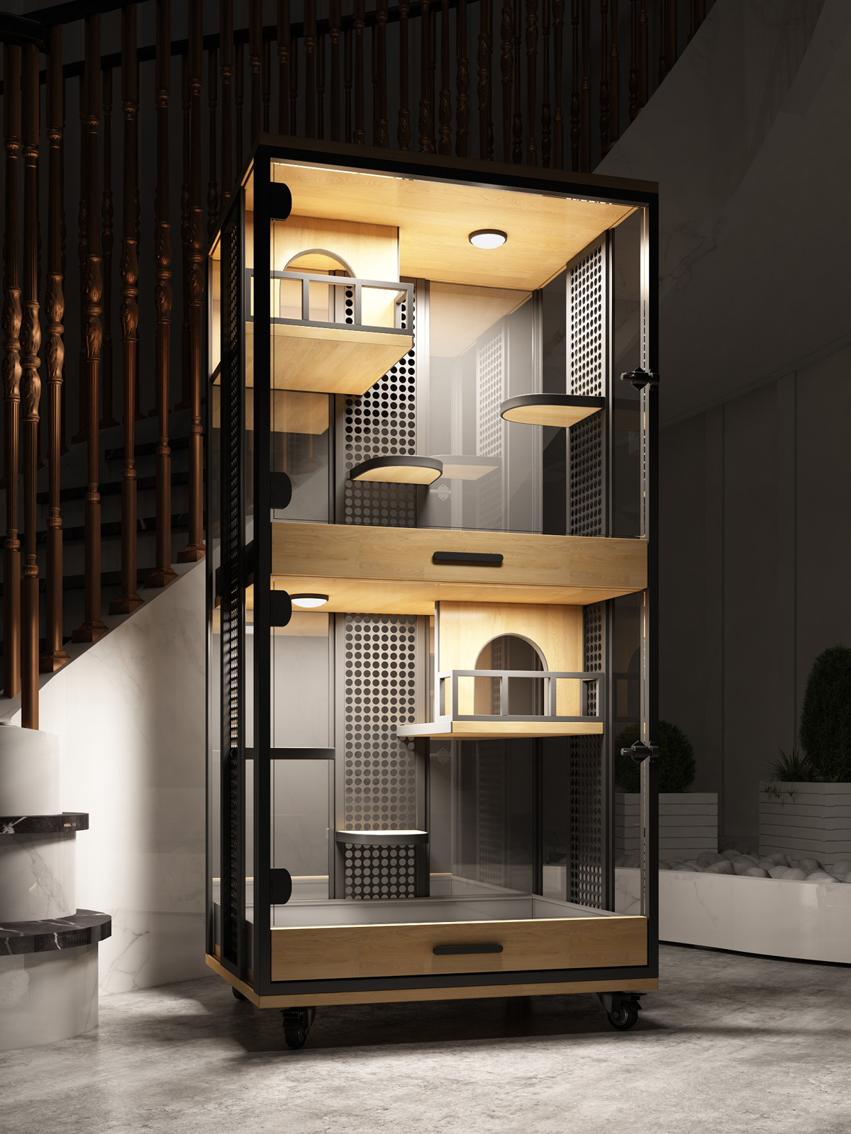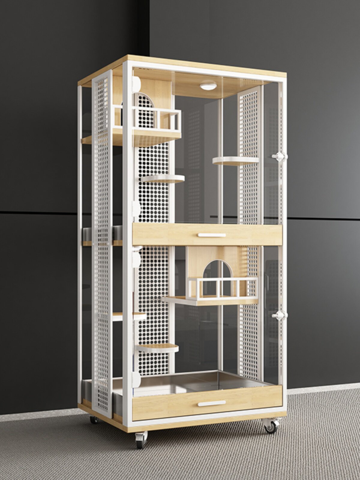 Мой сосед Тоторо Шкаф роскошная вилла с твердым деревом супер большой клетки панорамная прозрачная двойная слепые свидания клетки для сосновой белки гнездо гнездо медово