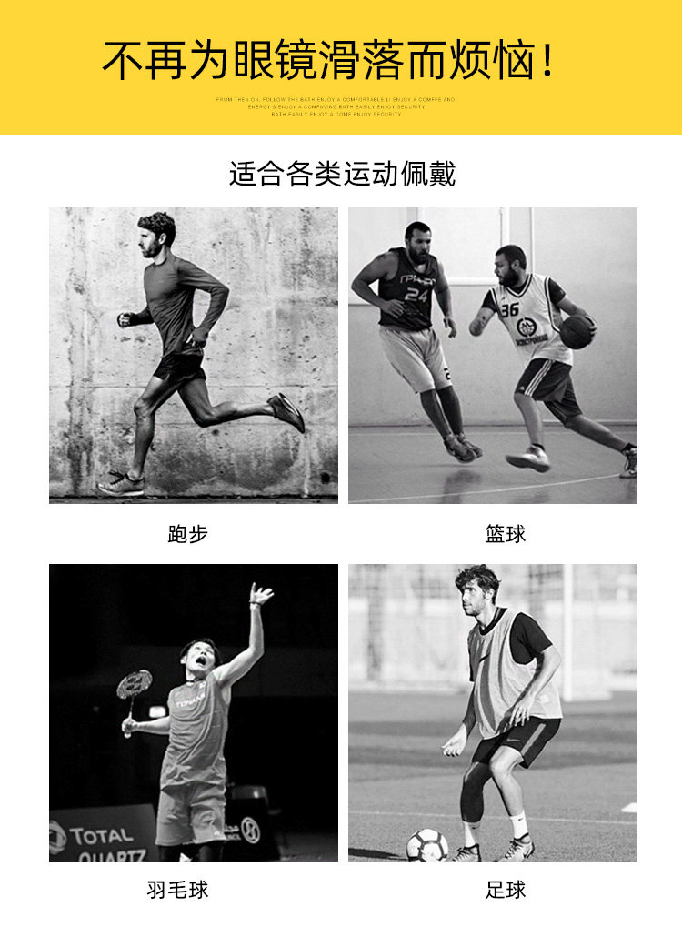 Баскетбольные нескользящие очки, цепь, регулируемый шнурок-держатель, фиксаторы в комплекте, на резинке