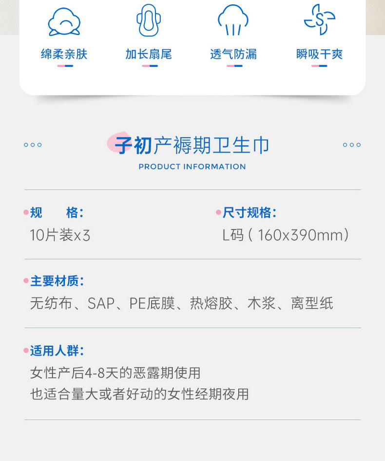子初 Гигиеническая прокладка, послеродовая длинная простыня, 30 штук