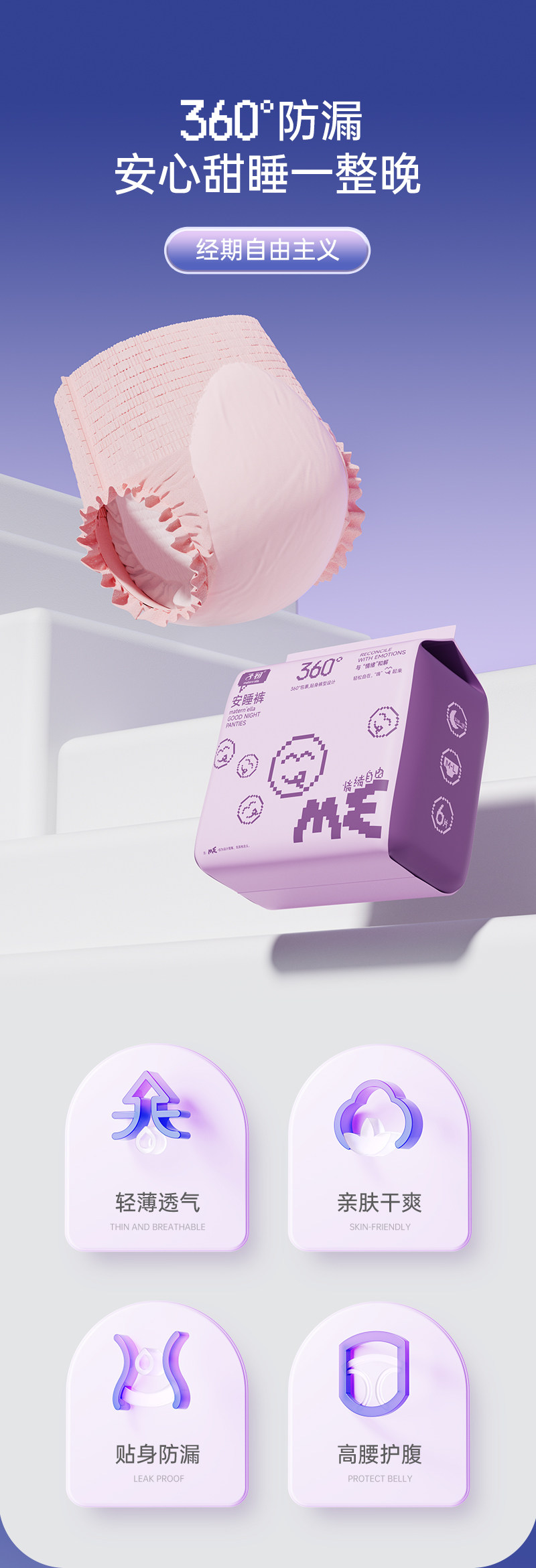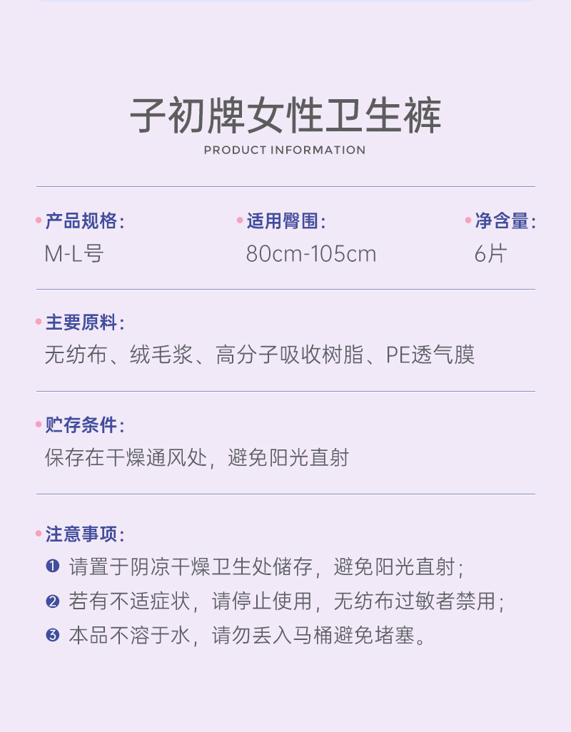 子初 Герметические штаны, легкая и тонкая дышащая гигиеническая прокладка, ночное использование, 6 штук