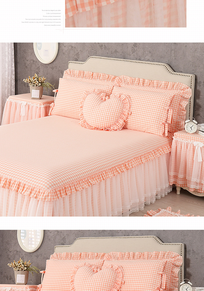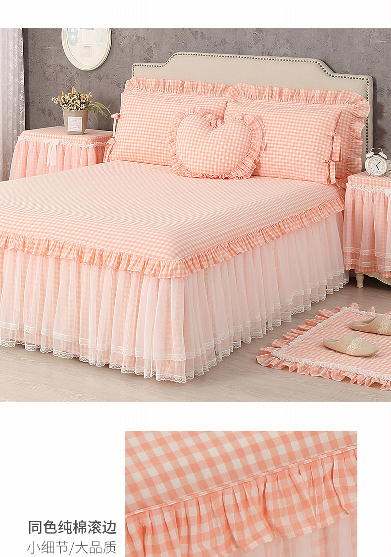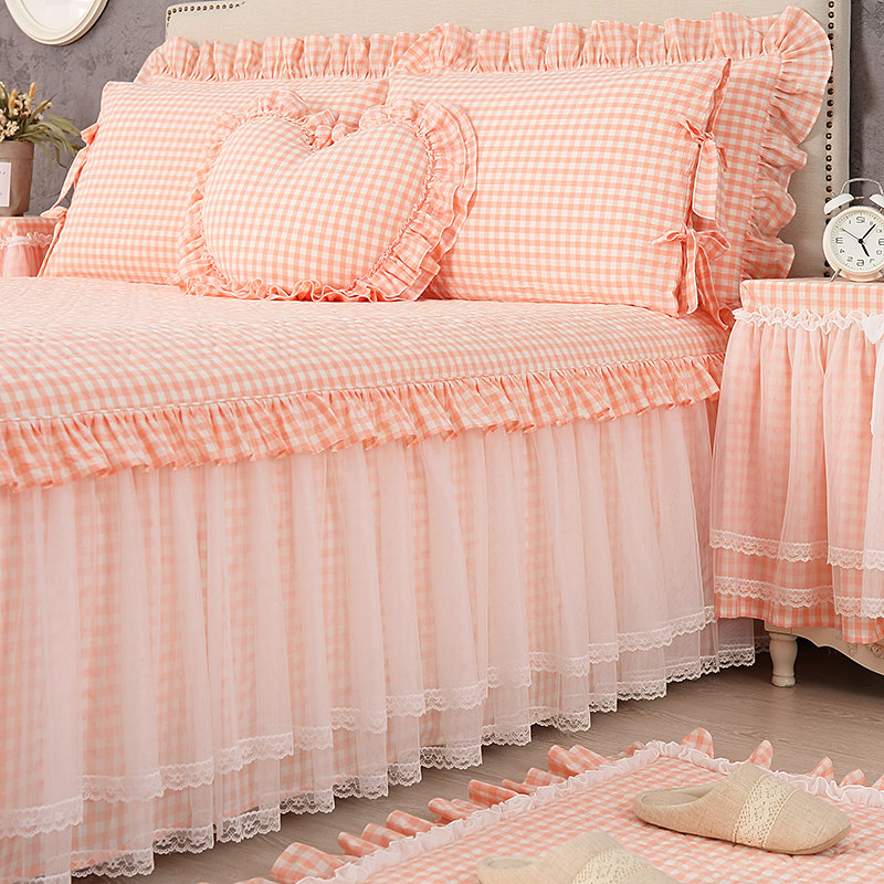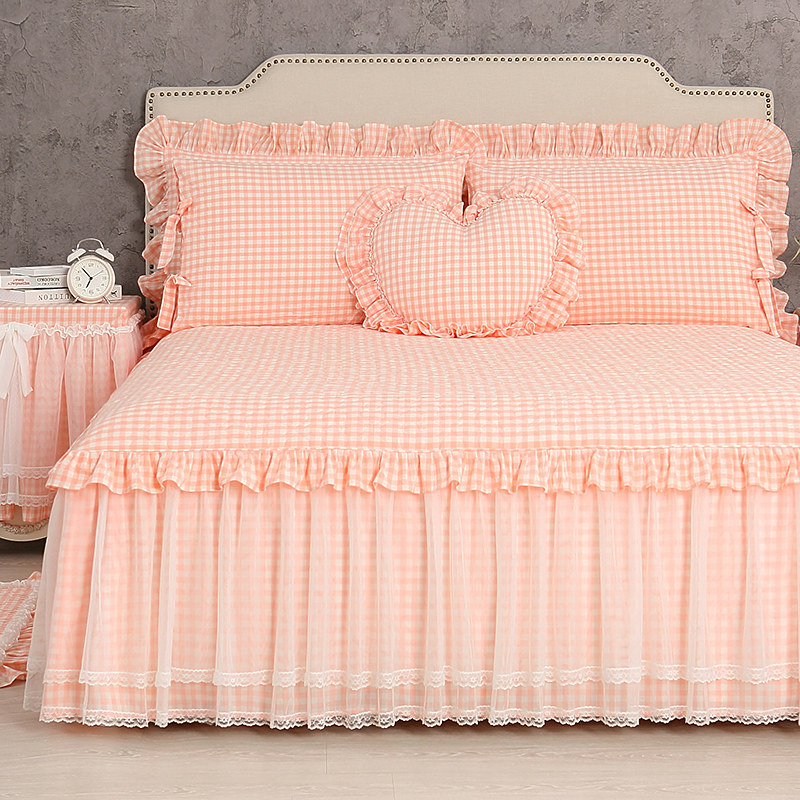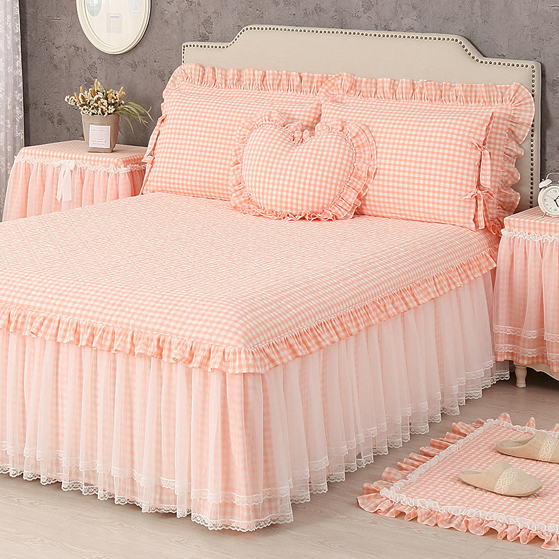- Одиночная юбка для кровати+кружевная подушка рукав