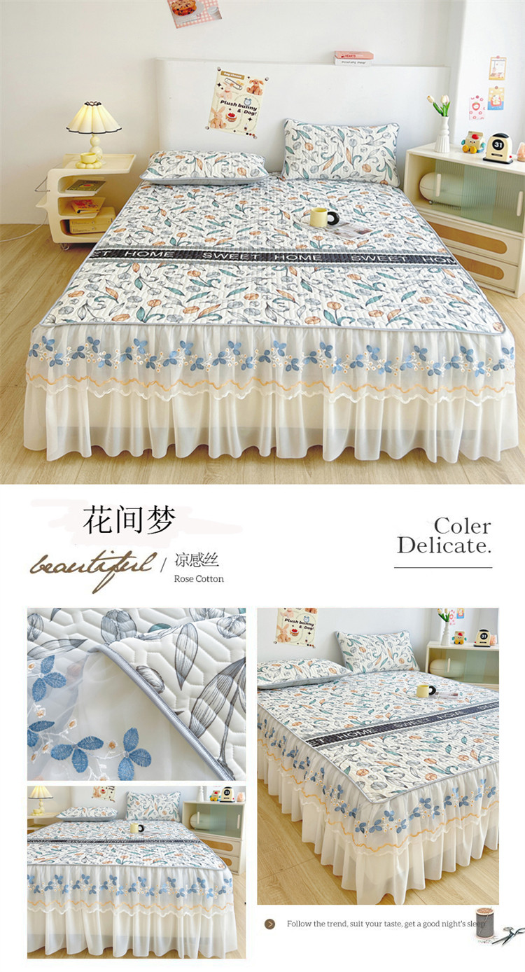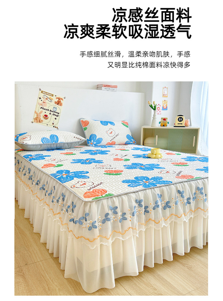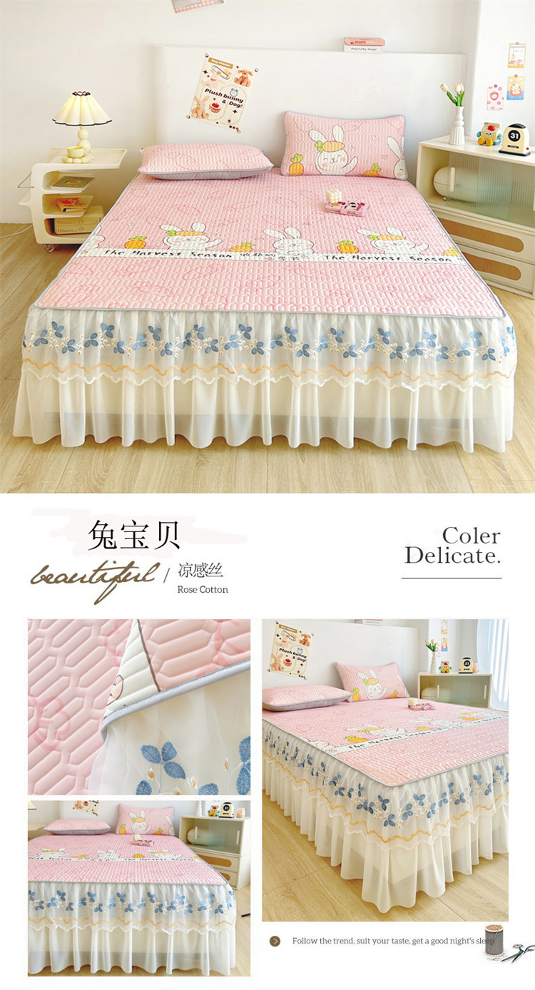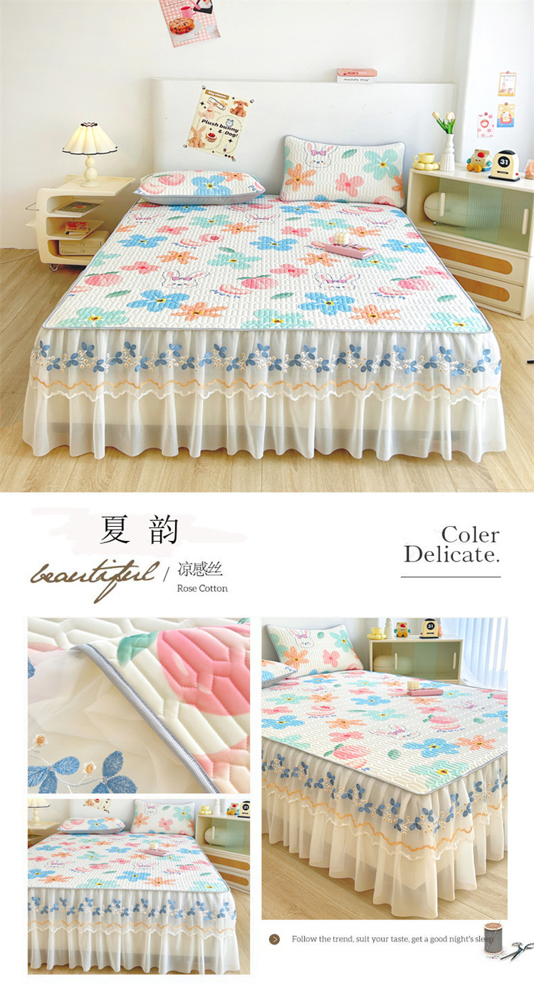 Коврик, корейский комплект, шелковое летнее покрывало, 3 предмета, кружевное платье