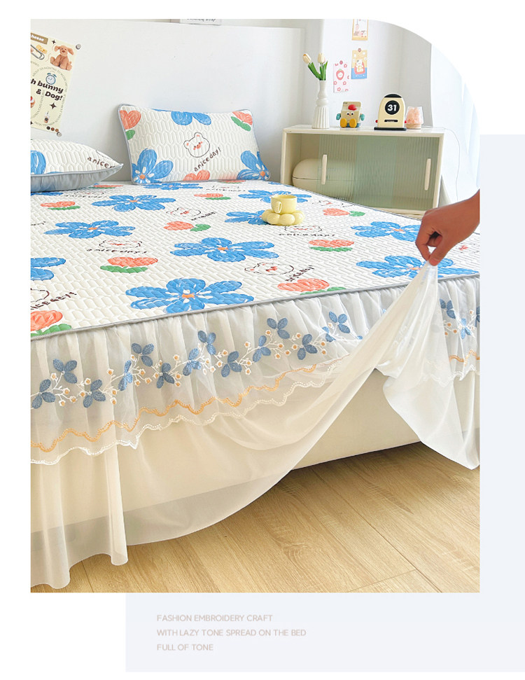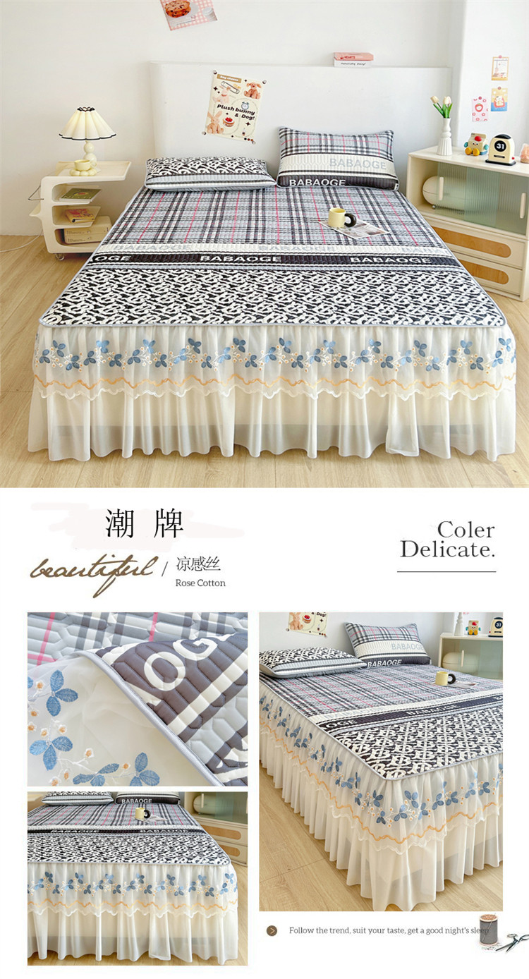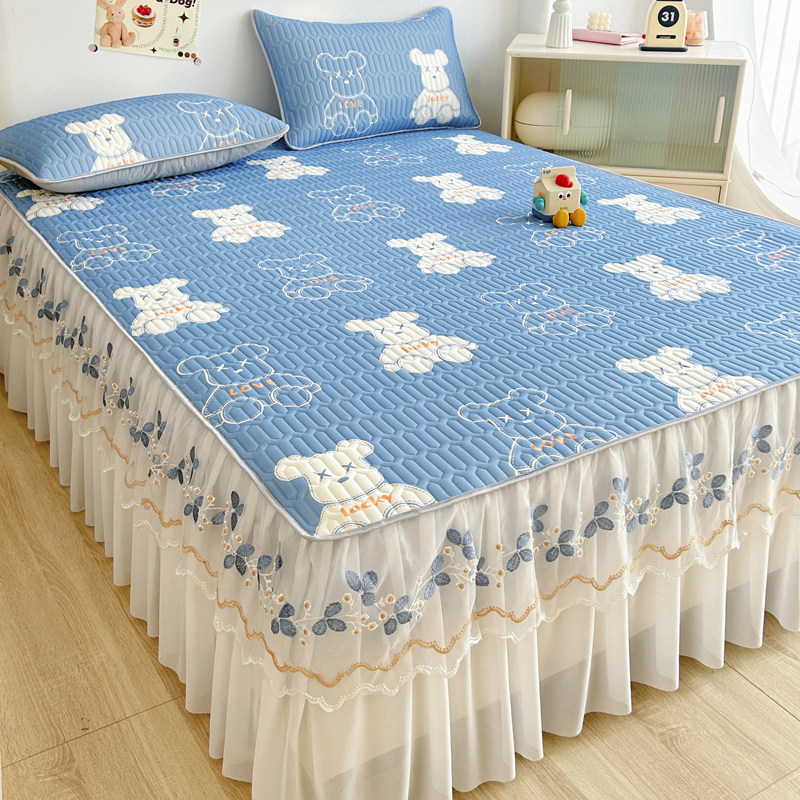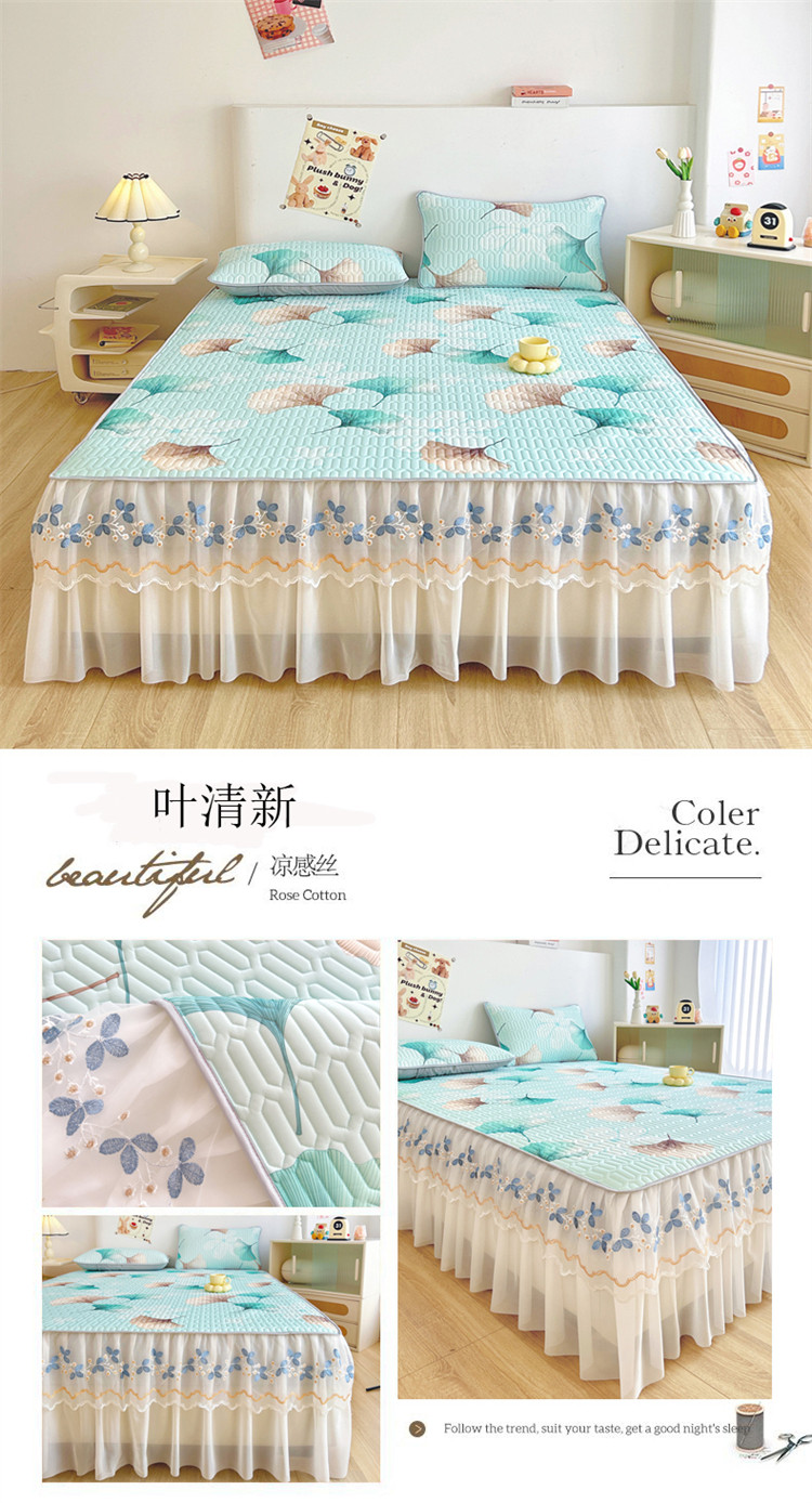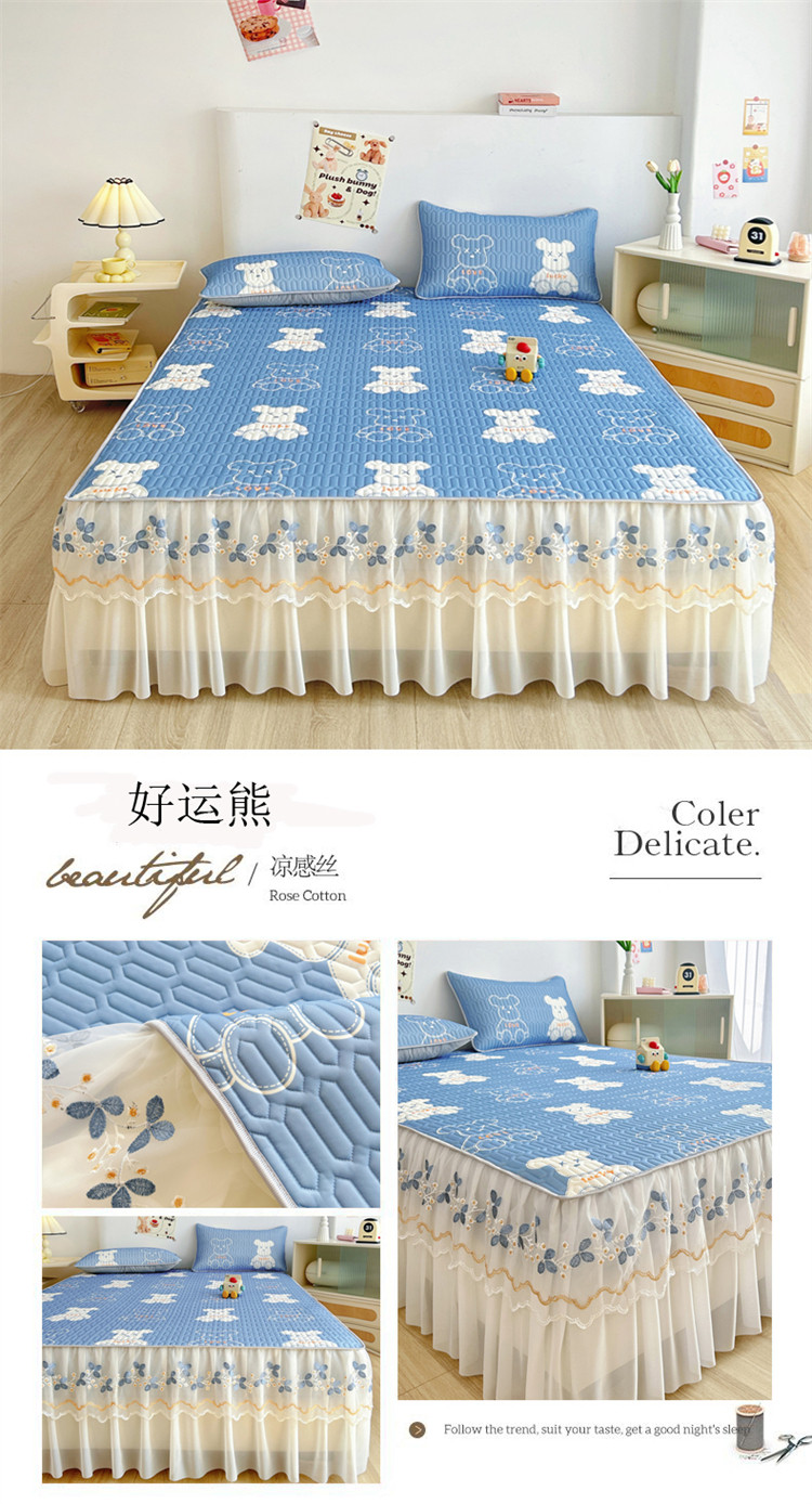 Коврик, корейский комплект, шелковое летнее покрывало, 3 предмета, кружевное платье