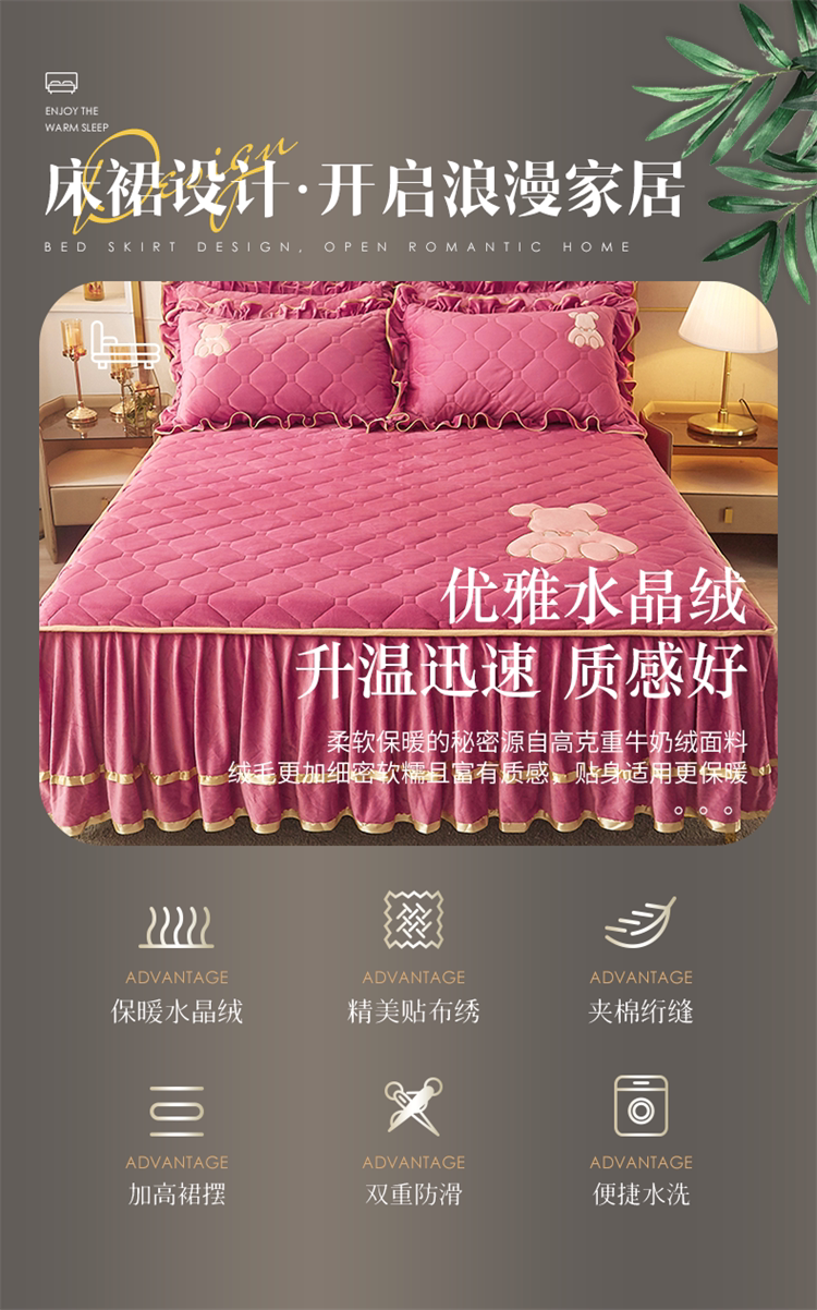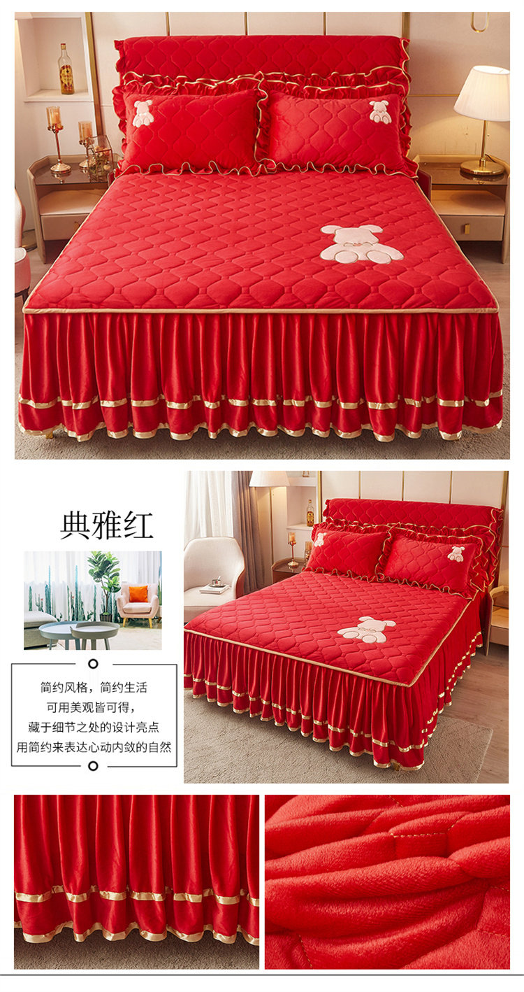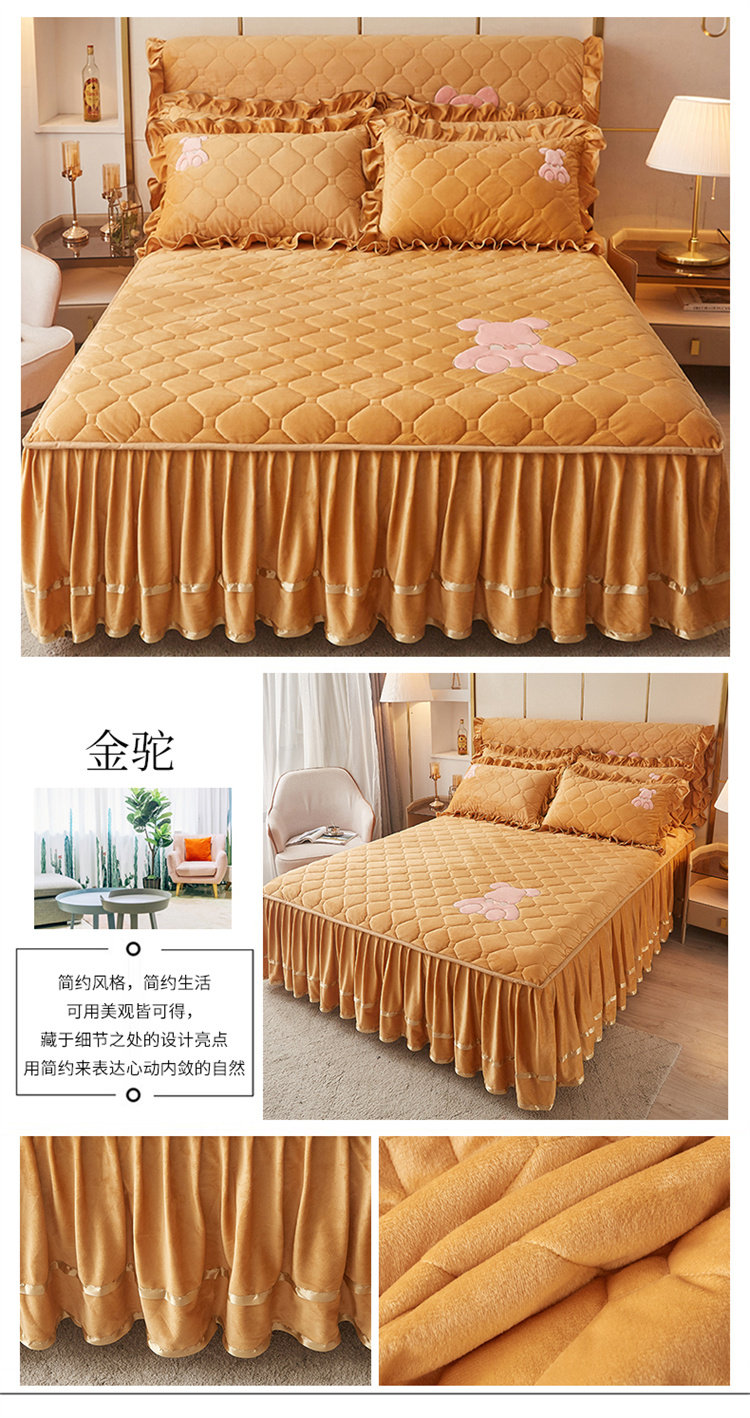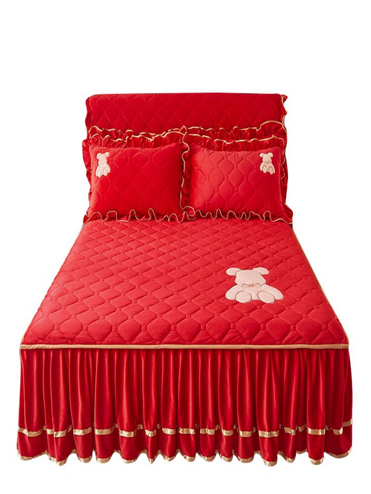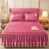 Бархатное стеганое покрывало, комплект, нескользящая простыня, бортики, фартук, пылезащитная крышка, увеличенная толщина, 3 предмета