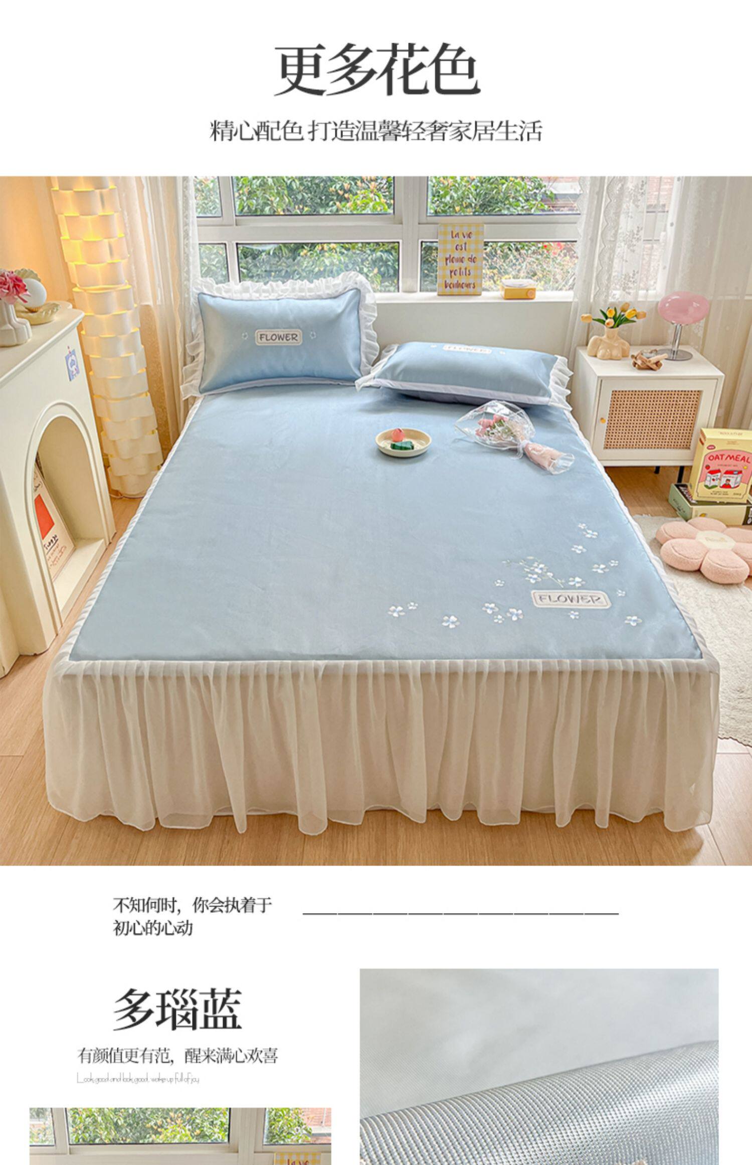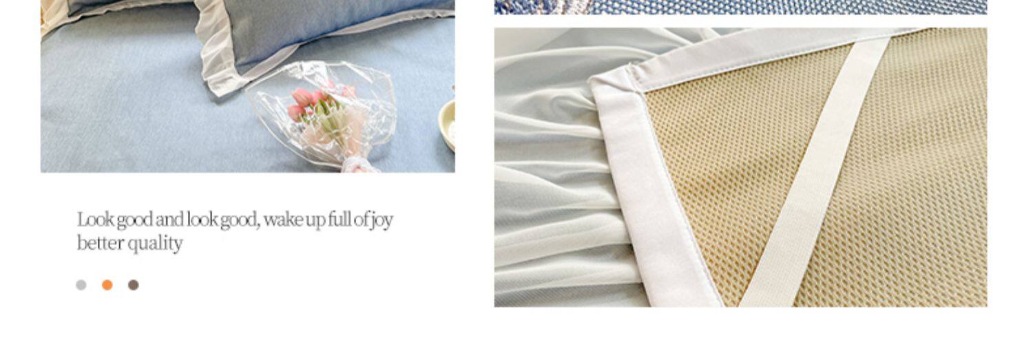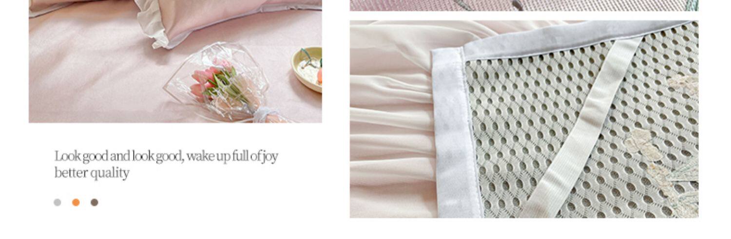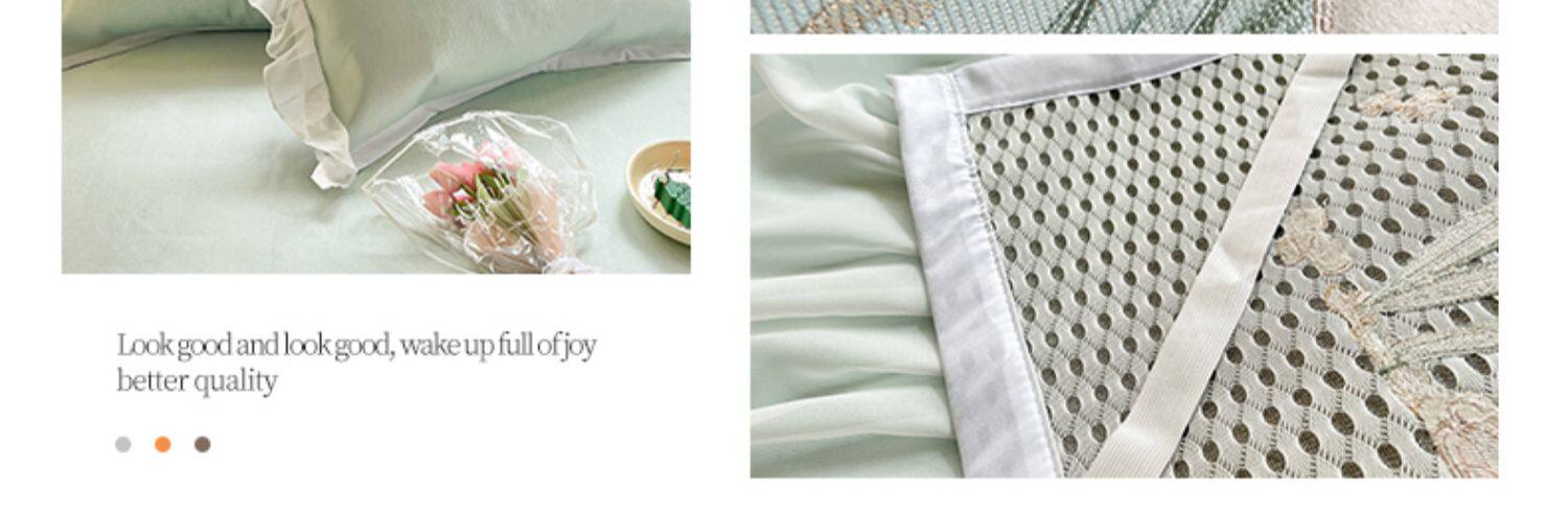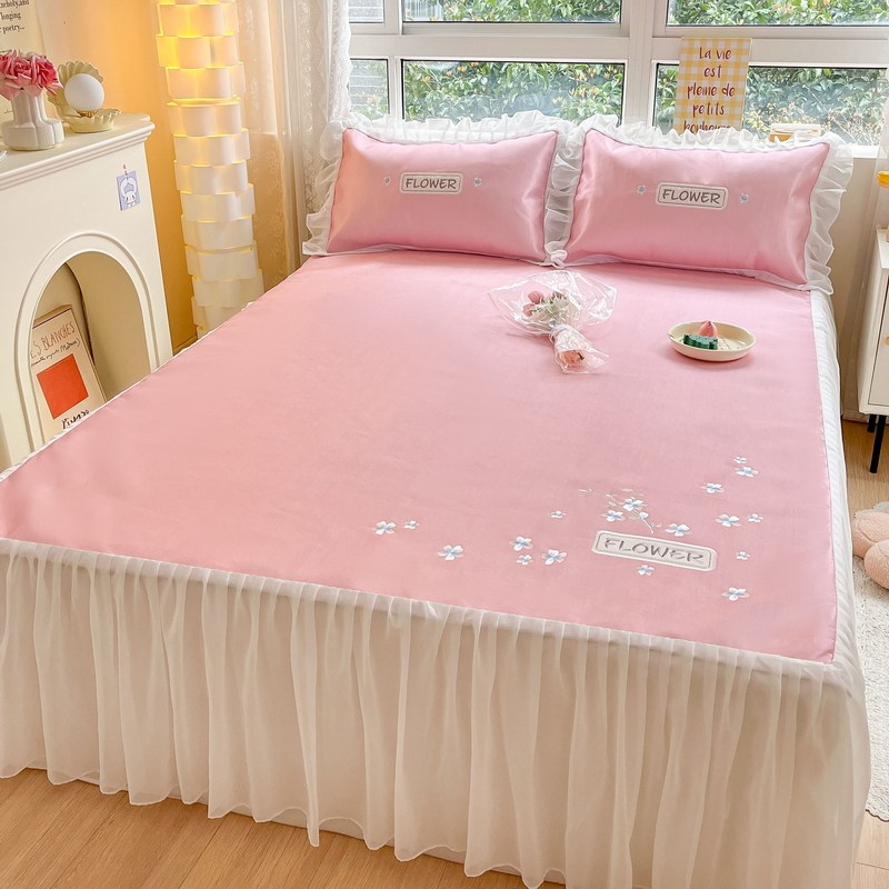 - 180смx200см+пара наволочек [Коврик класса А с вышивкой из ледяного шелка в стиле юбки-кровати]