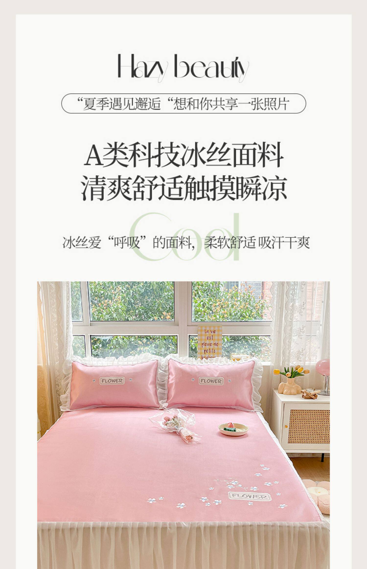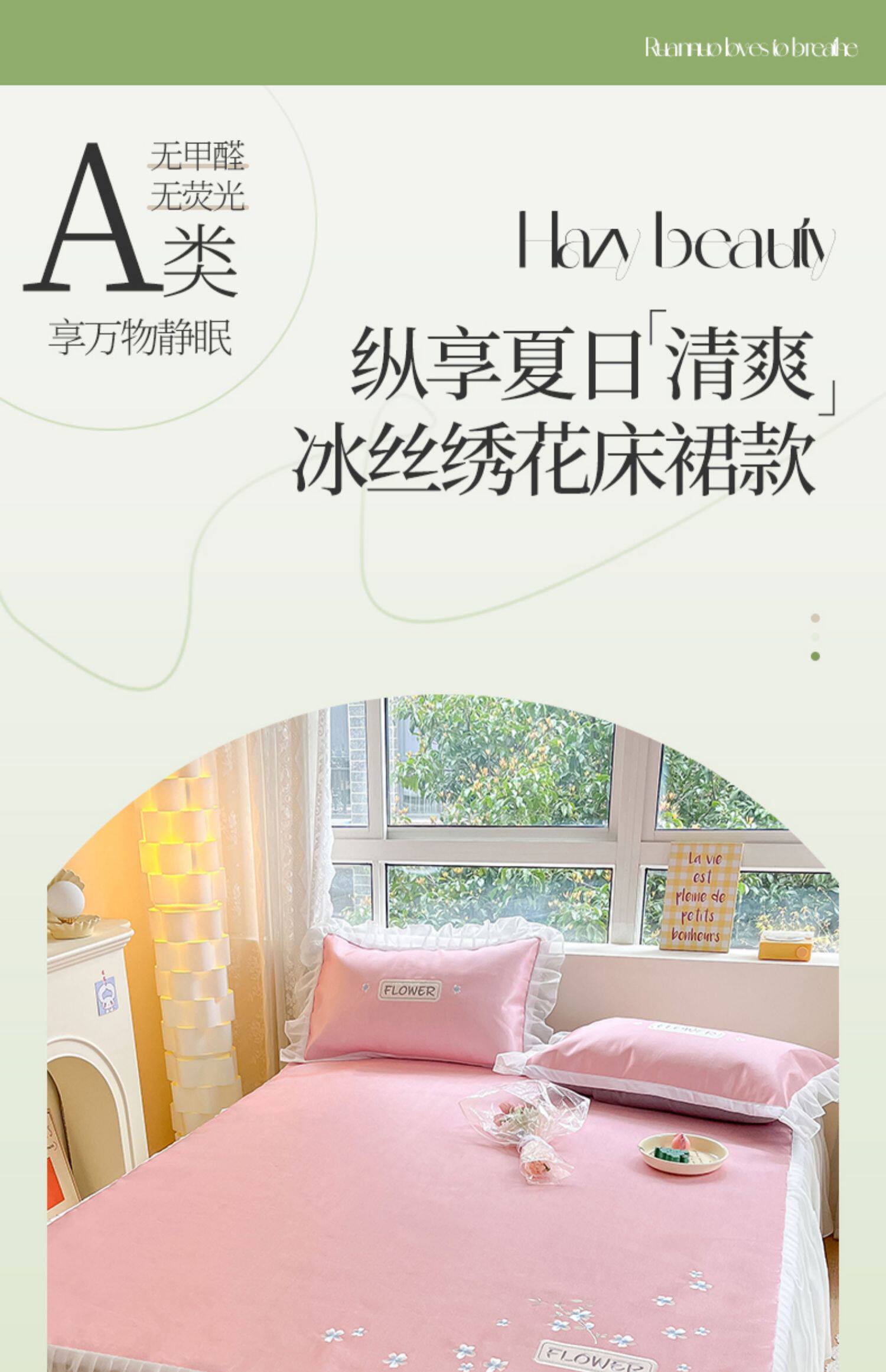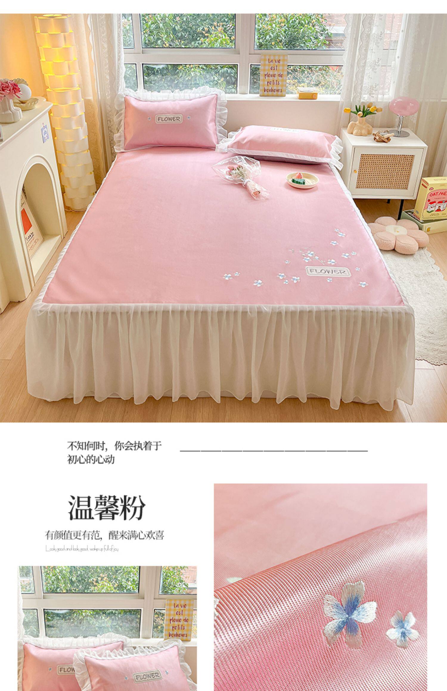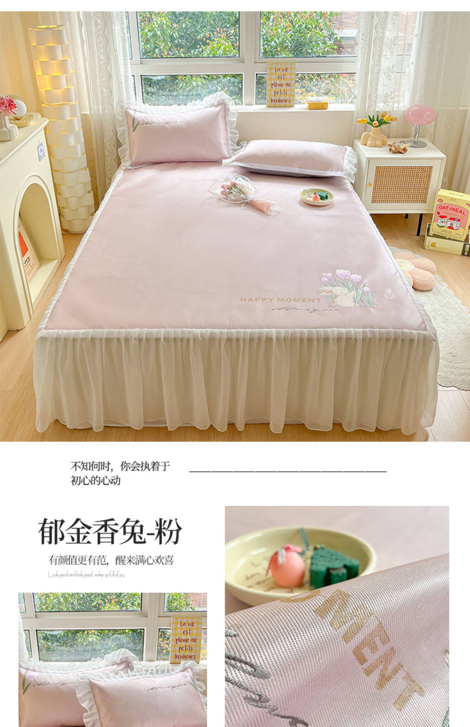 - 180смx200см+пара наволочек [Коврик класса А с вышивкой из ледяного шелка в стиле юбки-кровати]