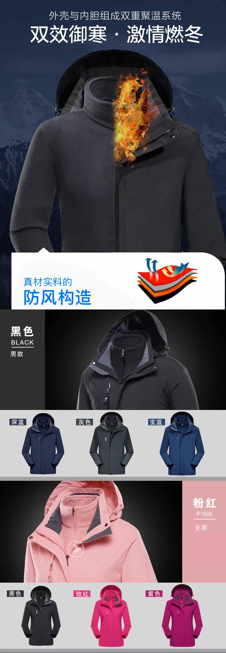 Дорожная куртка для влюбленных подходит для мужчин и женщин, съемный флисовый комплект, «три в одном»