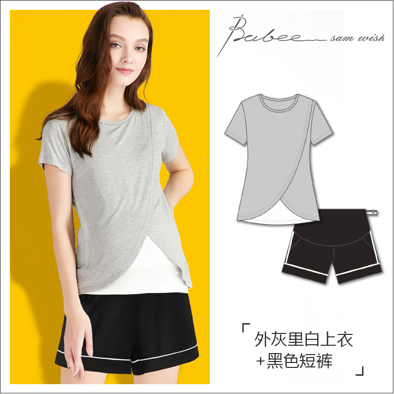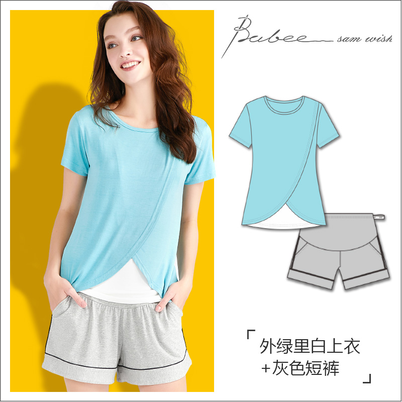 Летняя тонкая пижама для кормящих грудью для выхода на улицу, короткий рукав