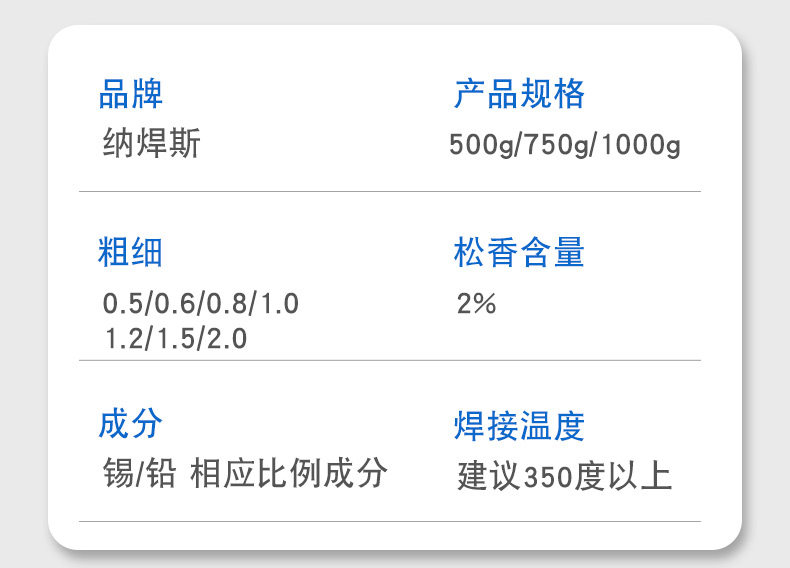 | Цвет: | Олово 40а [диаметр линии 0,8] 700 граммов, Олово 40а [диаметр линии 1.0] 700 грамм, Олово 40а [диаметр линии 0,6] 700 граммов, Олово 45A [диаметр линии 0,8] 700 граммов, Олово 45а [диаметр линии 1.0] 700 граммов, Олово 45A [диаметр линии 0,6] 700 граммов, Олово 50A [диаметр линии 0,8] 700 граммов, Содержит олово 50А [диаметр линии 1.0] 700 граммов, TIN 50A [диаметр линии 0,6] 700 грамм, 55A с оловом [диаметр линии 0,8] 700 граммов, Олово 55A [диаметр линии 1.0] 700 граммов, 55A [диаметр линии 0,6] 700 граммов, Содержит олово 63A [диаметр линии 0,8] 700 граммов, Содержит олово 63A [диаметр линии 1.0] 700 граммов, Содержит олово 63A [диаметр линии 0,6] 700 граммов, Примечание: [индивидуальный вес и диаметр линии] |