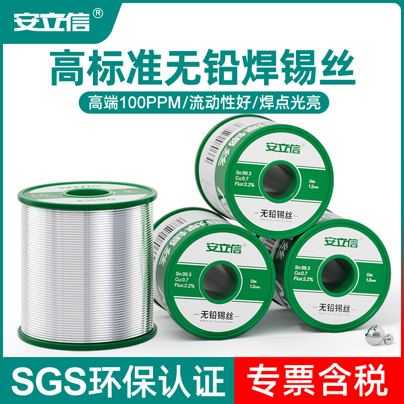 安立信 Бессвинцовая проволока для припоя, 1 кг, экологически чистая паяльная проволока, содержащая канифольный сердечник, сертифицирована высокой чистотой SN993.