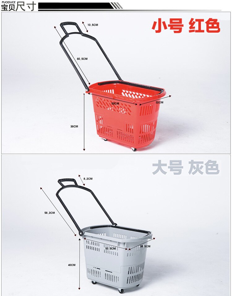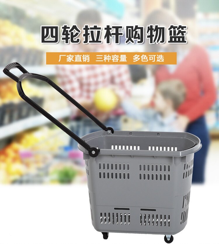 Корзина для покупок в супермаркете, тяга с колесами, корзина для покупок в супермаркете, пластиковая корзина для покупок для продуктов, утолщенная корзина для покупок в торговом центре, магазин для покупок