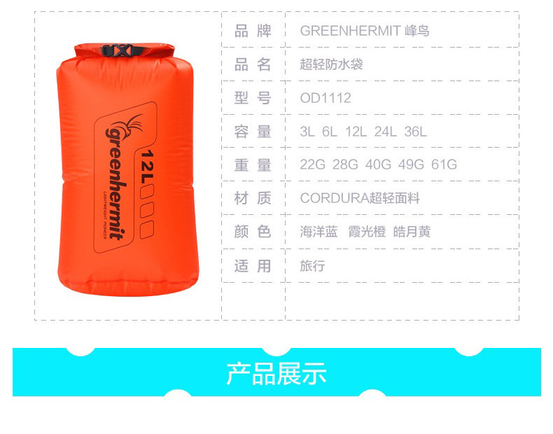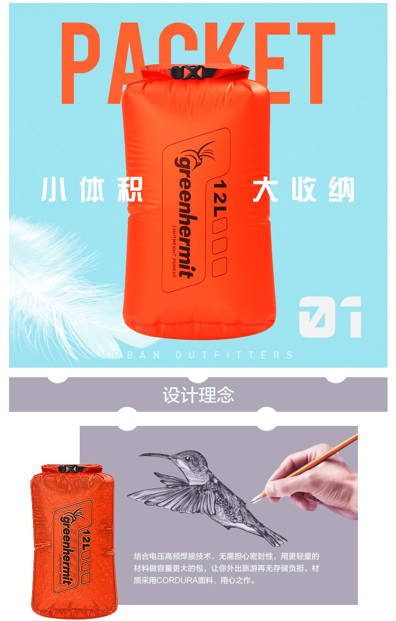 Пик Bird Greenhermit 6L/12L/24L/36 Ультра -светлый водонепроницаемый мешок водонепроницаемый пакет с дрейфующей сумкой