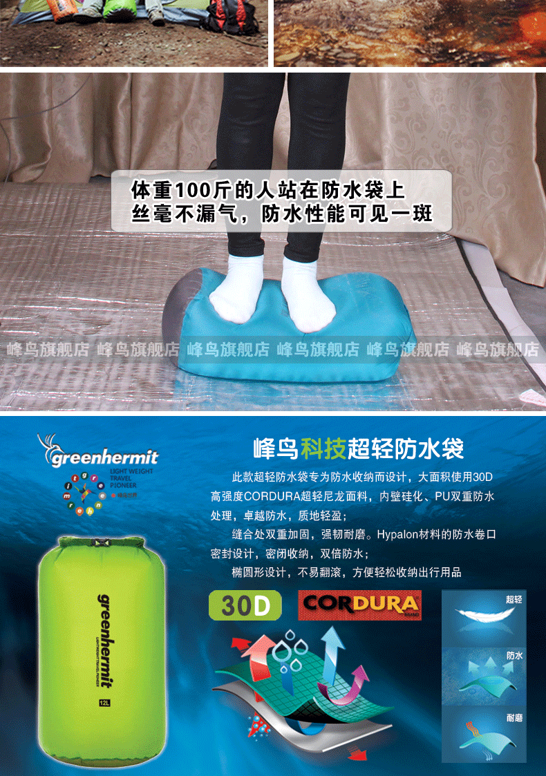 Корпус пакета представляет собой двух водонепроницаемую обработку внутренней стены и ПУ, которая обеспечивает превосходную водонепроницаемость.