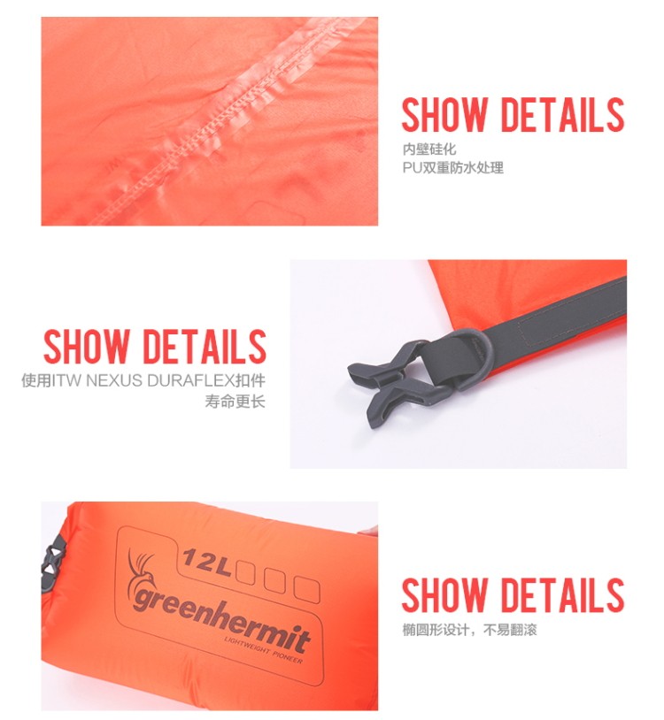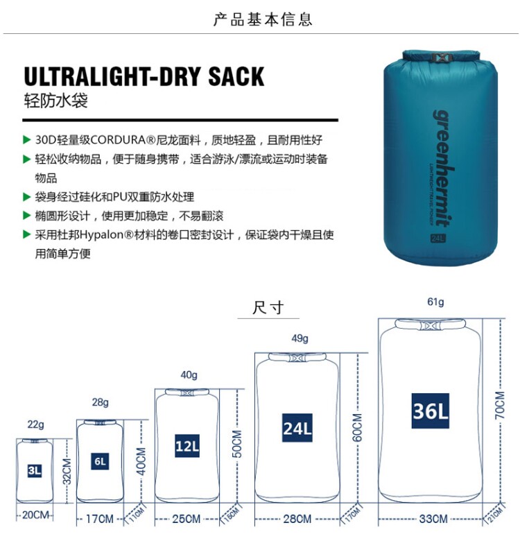 Пик Bird Greenhermit 6L 12L 24L Dry Back Ultra -светлый наружный водонепроницаемый мешок/пакет для хранения плавания