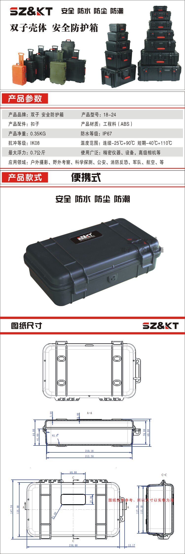 Точная коробка для прибора защитная коробка для защитной коробки Фотография Фотография Коробка водонепроницаемая коробка 242*148*68 мм