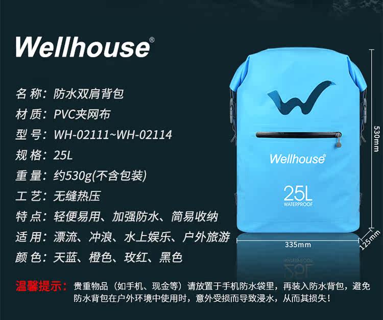 Wellhouse Водонепроницаемая сумка, сумка для плавательных принадлежностей, сумка для хранения, пляжная непромокаемая сумка, рюкзак для снорклинга