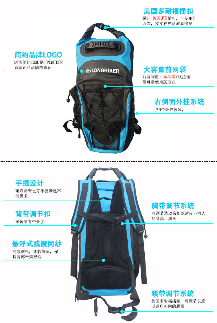 Этот водонепроницаемый рюкзак глубоко поражена американскими любителями спорта на открытом воздухенравиться.Не только отличная водонепроницаемая производительность, но иПолная функция, модный вид, удобное переносЧтобы иметь преимущества мешков для альпинизма.Подходит для высокой интенсивности и водонепротив.