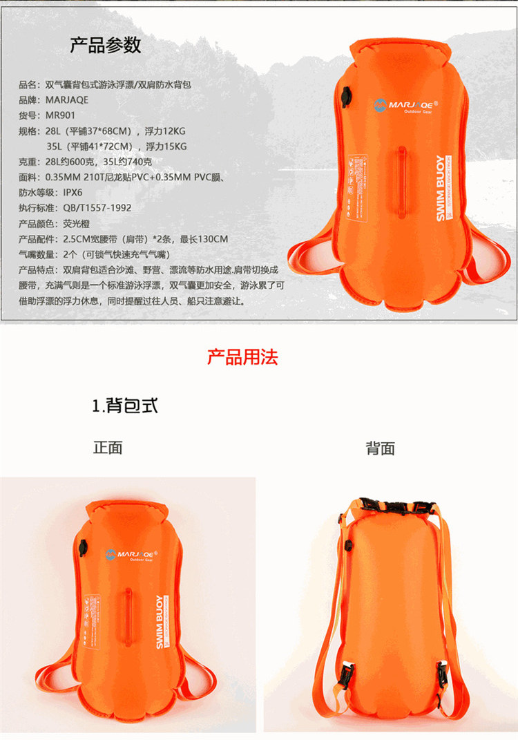 Подушка безопасности для плавания, съёмный буй, водонепроницаемый дорожный рюкзак, коробочка для хранения, две воздушные камеры