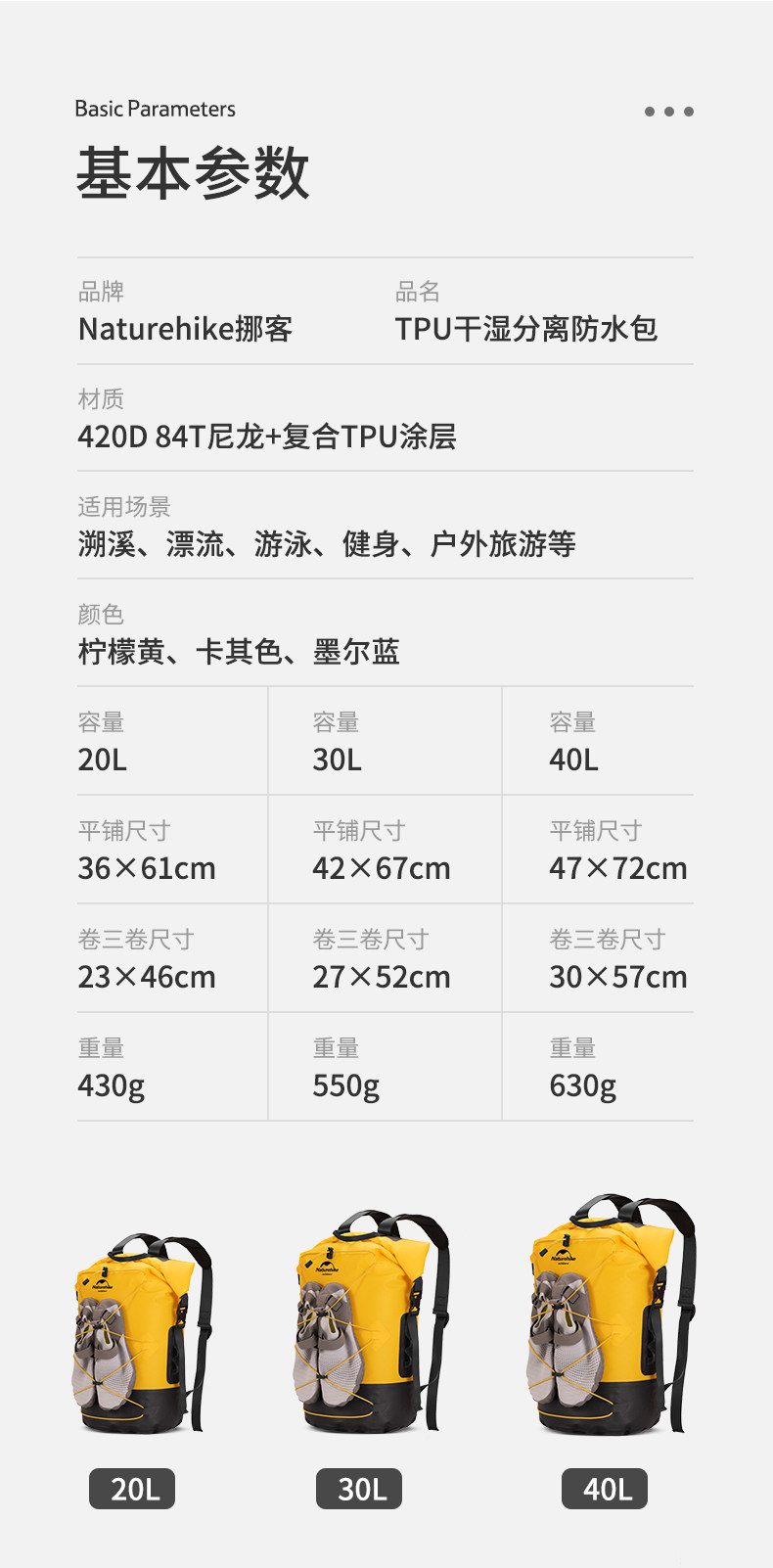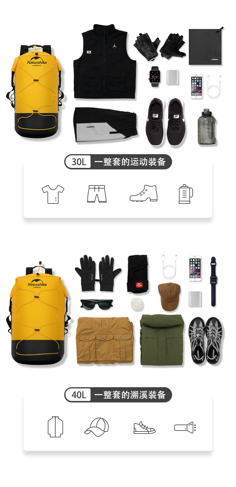 Naturehike Дорожная водонепроницаемая сумка с разделителями для плавания, снаряжение, рюкзак