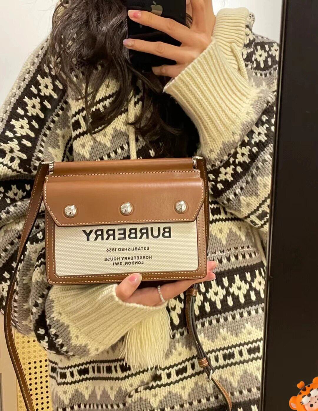 Burbrerry Horse Tyrla Double -Sided Canvas, Canvas, Cross -Cody Bag, Burbaoli Casual Hand