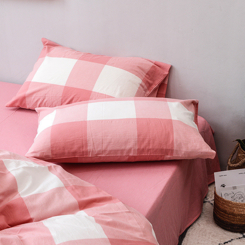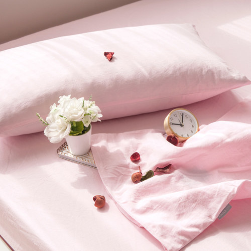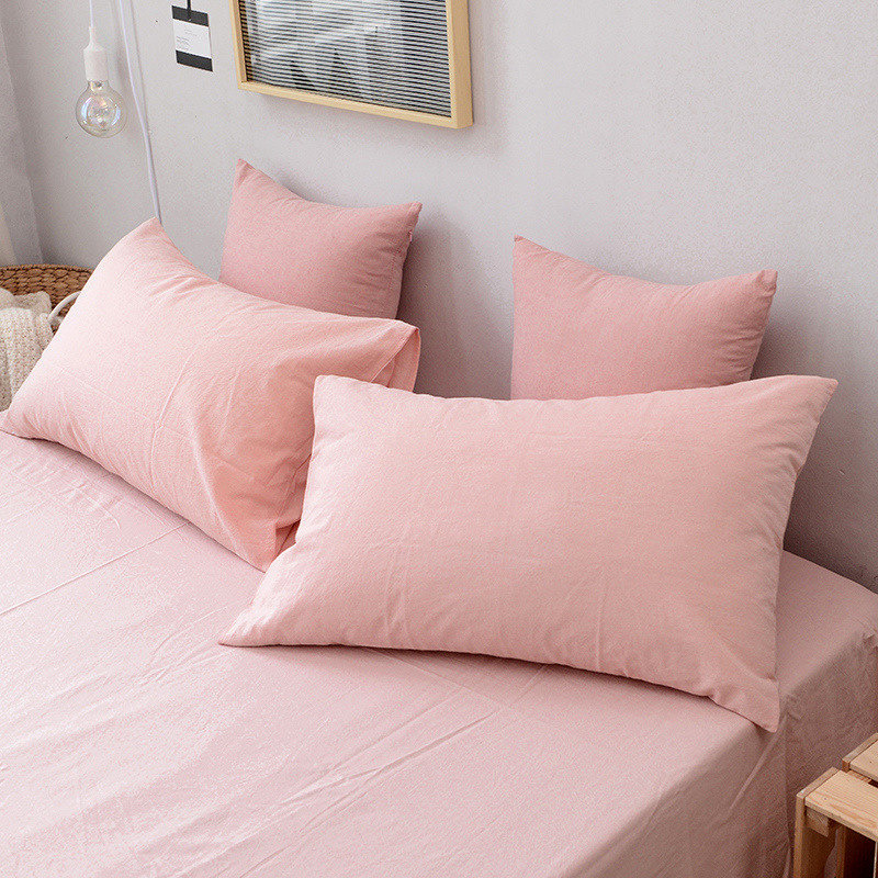 - Розовая наволочка из крупного сетчатого хлопка/стиранного хлопка 1 пара