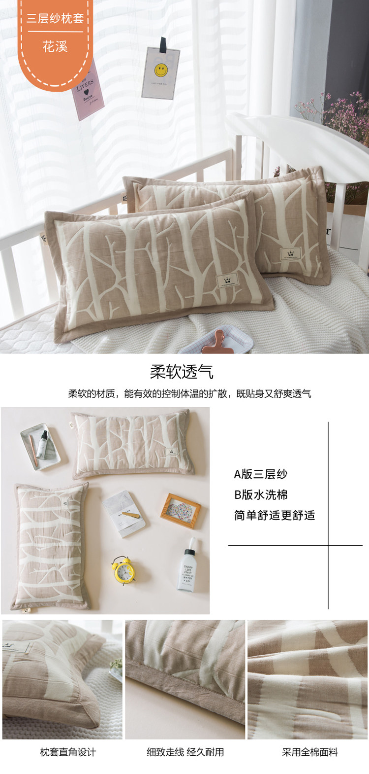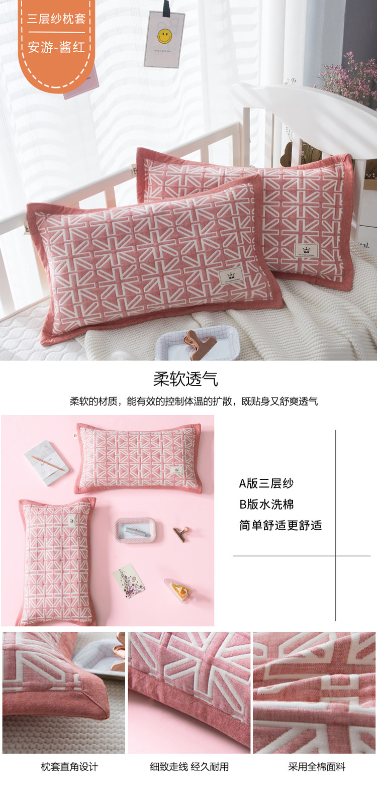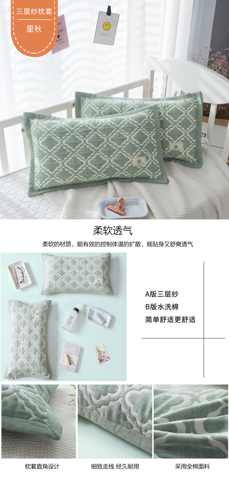 Хлопковая марлевая дышащая маленькая наволочка для школьников, впитывает пот и запах, 40