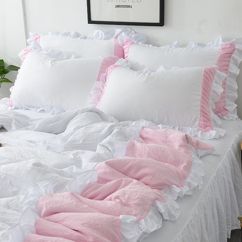 Мытья ватная рукава с твердым цветом кружевная мода двойная подушка набор 48x74 см однопроизводительный рукав с общежитием одной пары одна пара
