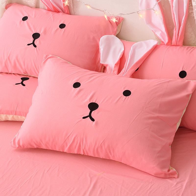 Мультяшный милый кролик, розовая наволочка для ушей, с вышивкой, 48x