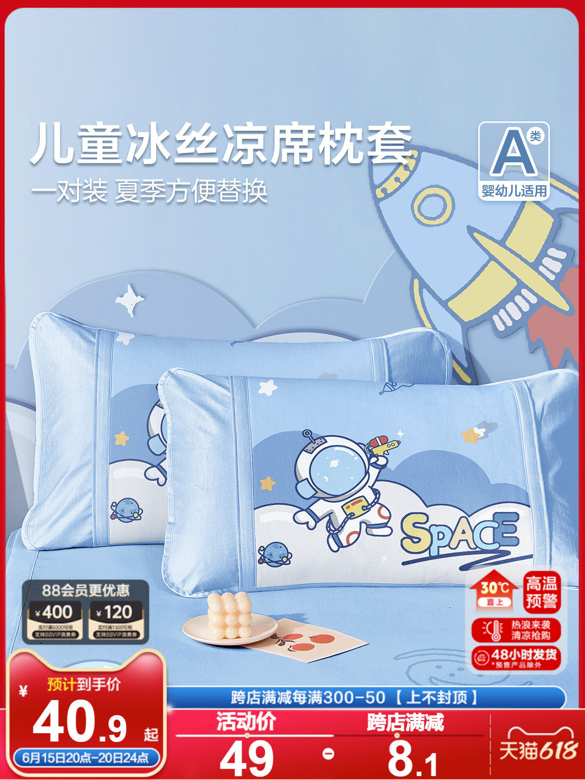 Летняя шелковая наволочка, мультяшный коврик для мальчиков для детского сада, 40