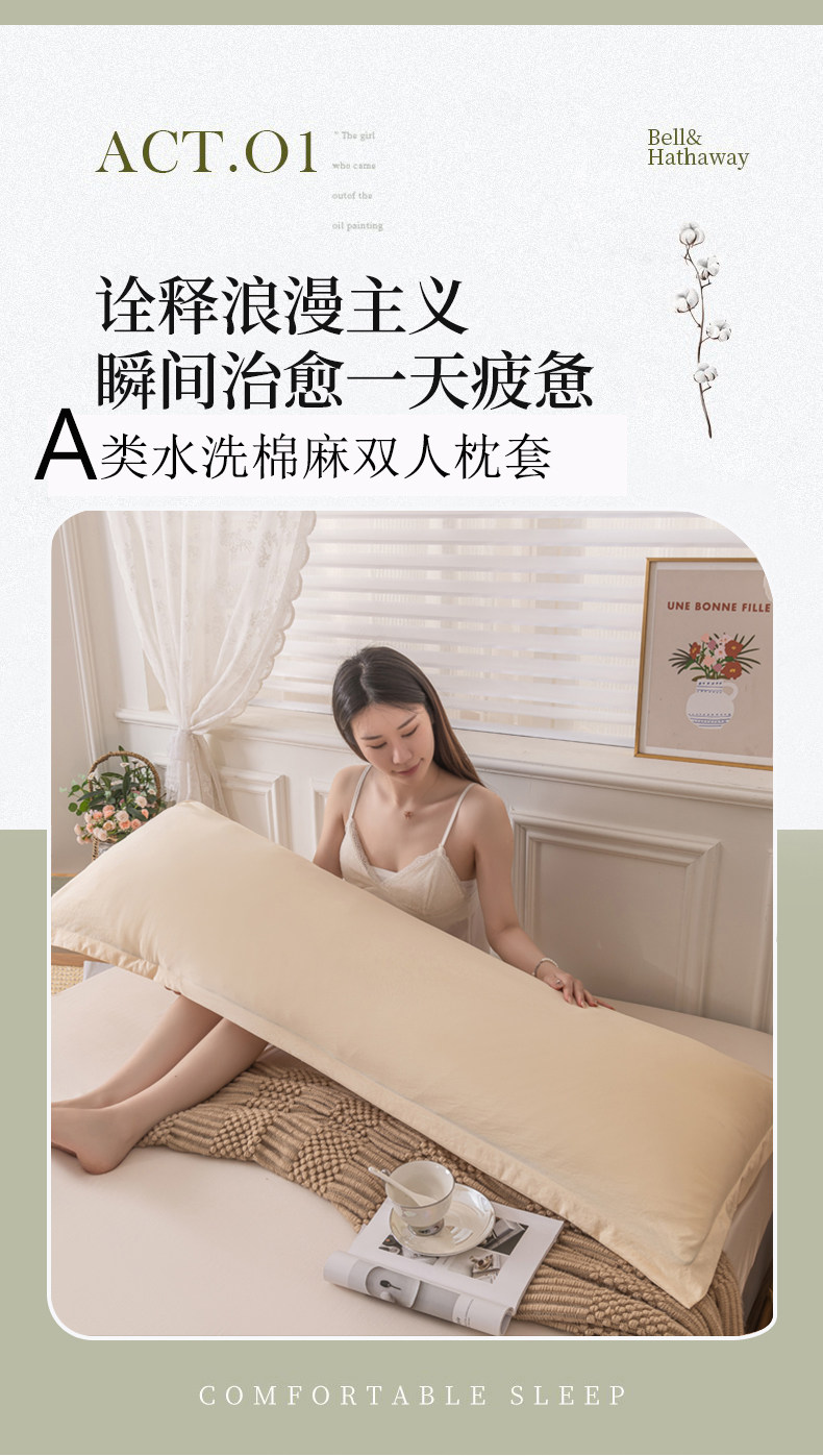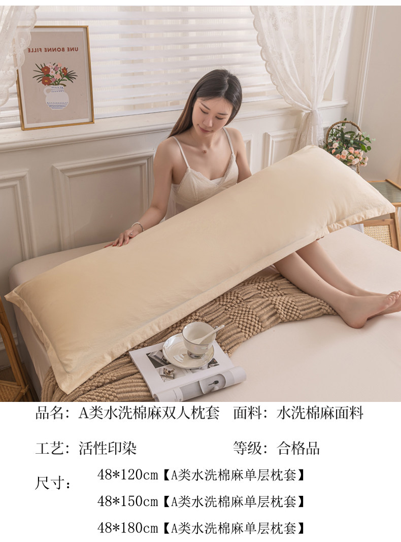 Двойная длинная наволочка из стираного хлопка и льна, домашняя длинная версия, наволочка для пары, длинная одинарная наволочка для взрослых, длинная одинарная наволочка с внутренним рукавом