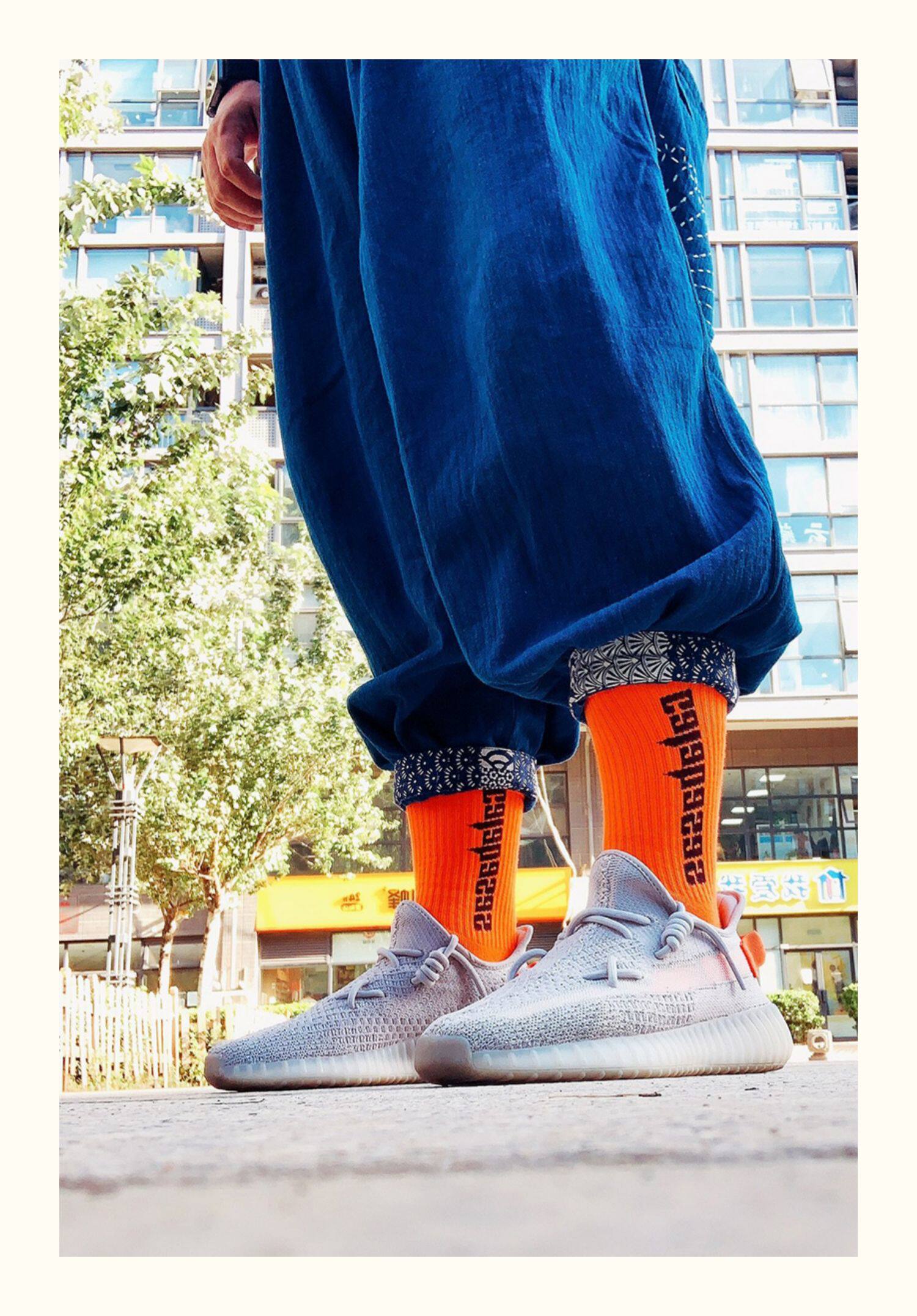 Tide, спортивные белые брендовые оранжевые флуоресцентные носки подходит для мужчин и женщин