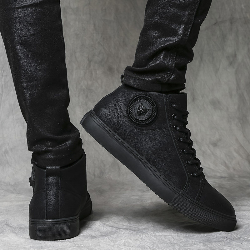 Весенняя высокая универсальная обувь в английском стиле для отдыха, высокие кроссовки, Гонконг, модель весна/осень 2023 года, из натуральной кожи