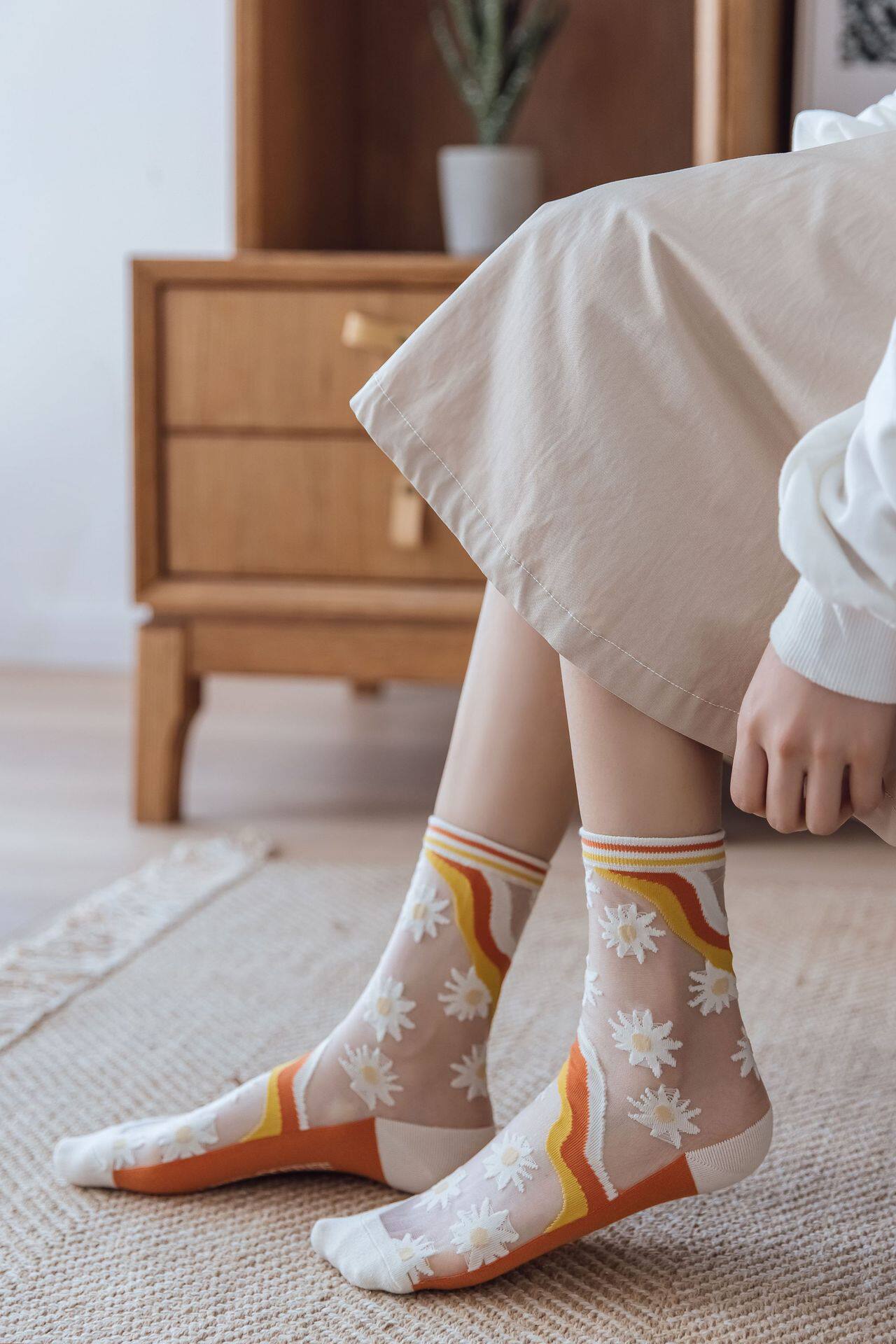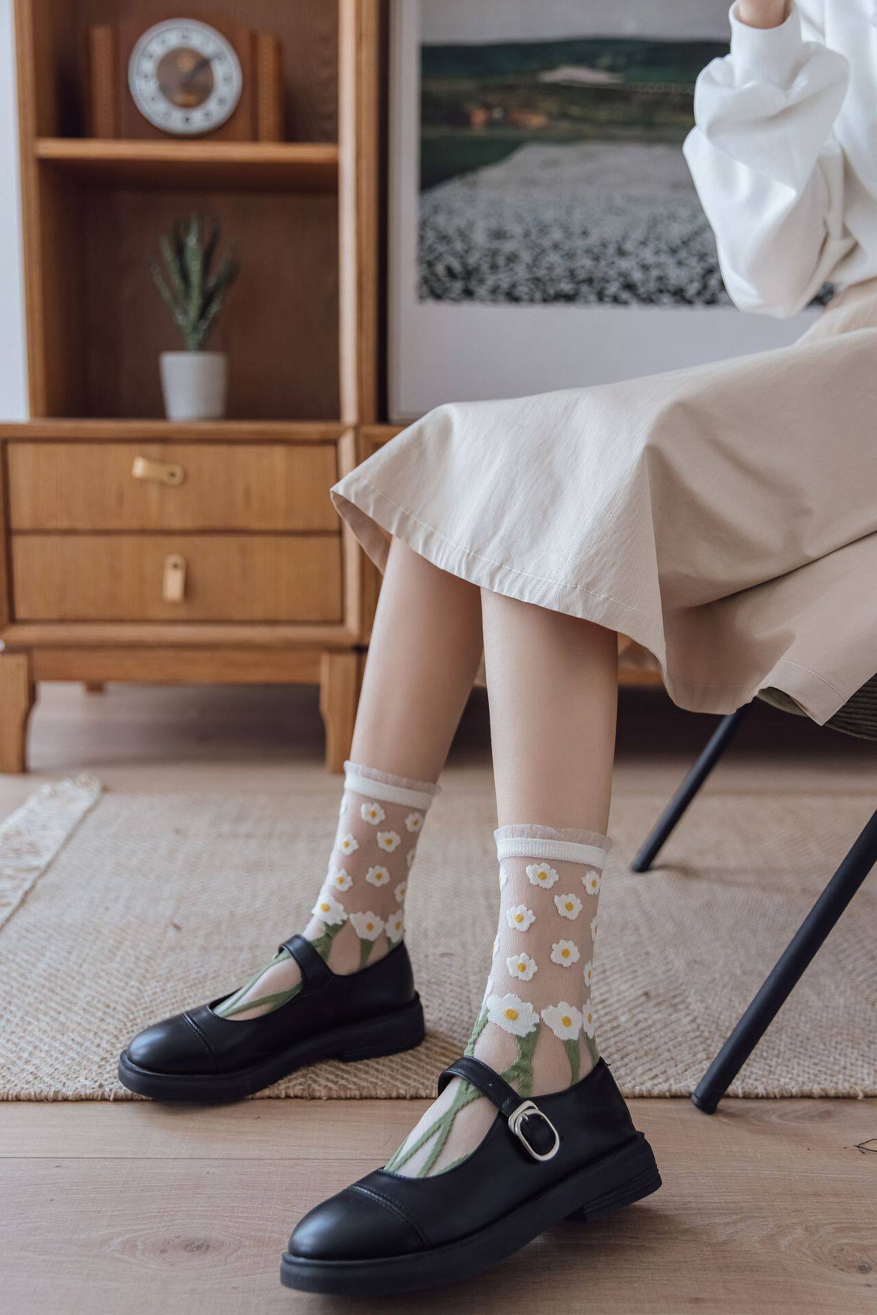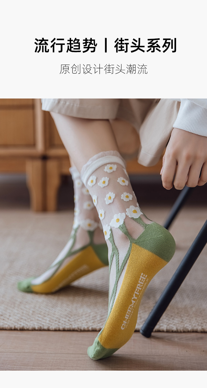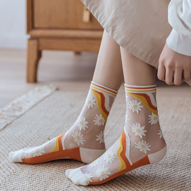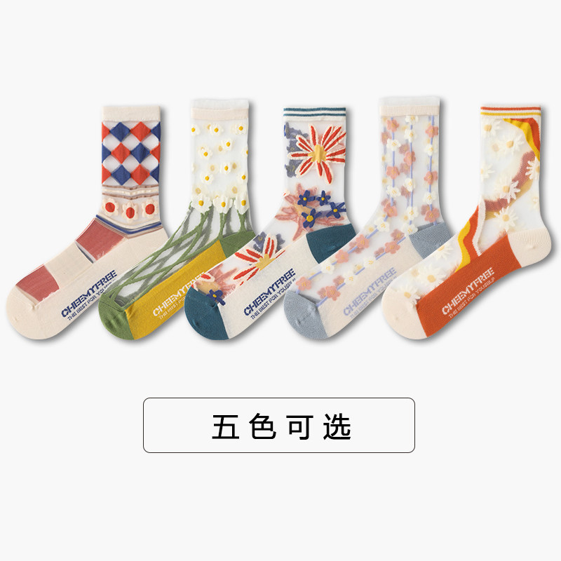 Tide, тонкие носки, трендовые гольфы с ромбовидным узором, средней длины, в цветочек