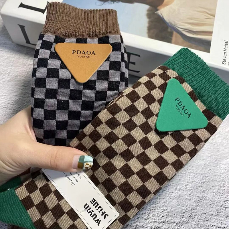 Tide, летние коричневые шахматы, спортивные носки, зеленые гольфы, средней длины