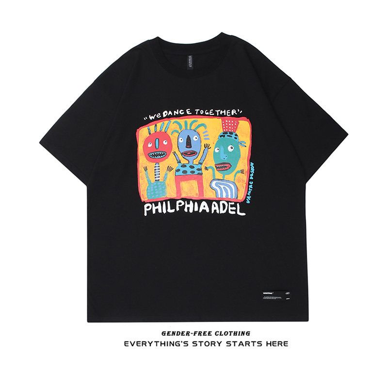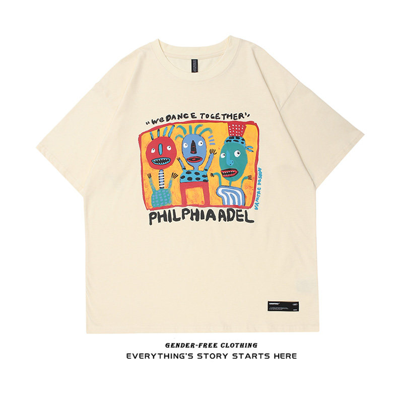Парная одежда для влюбленных, футболка с коротким рукавом, трендовая летняя одежда, ручная роспись, оверсайз, в американском стиле