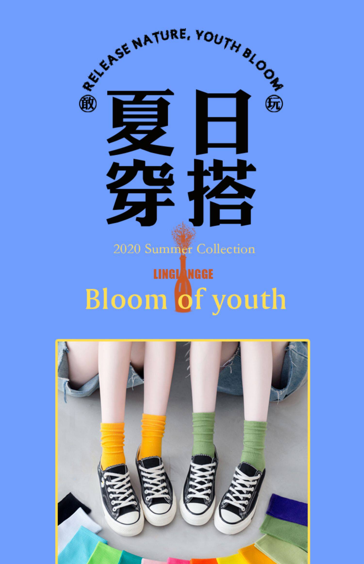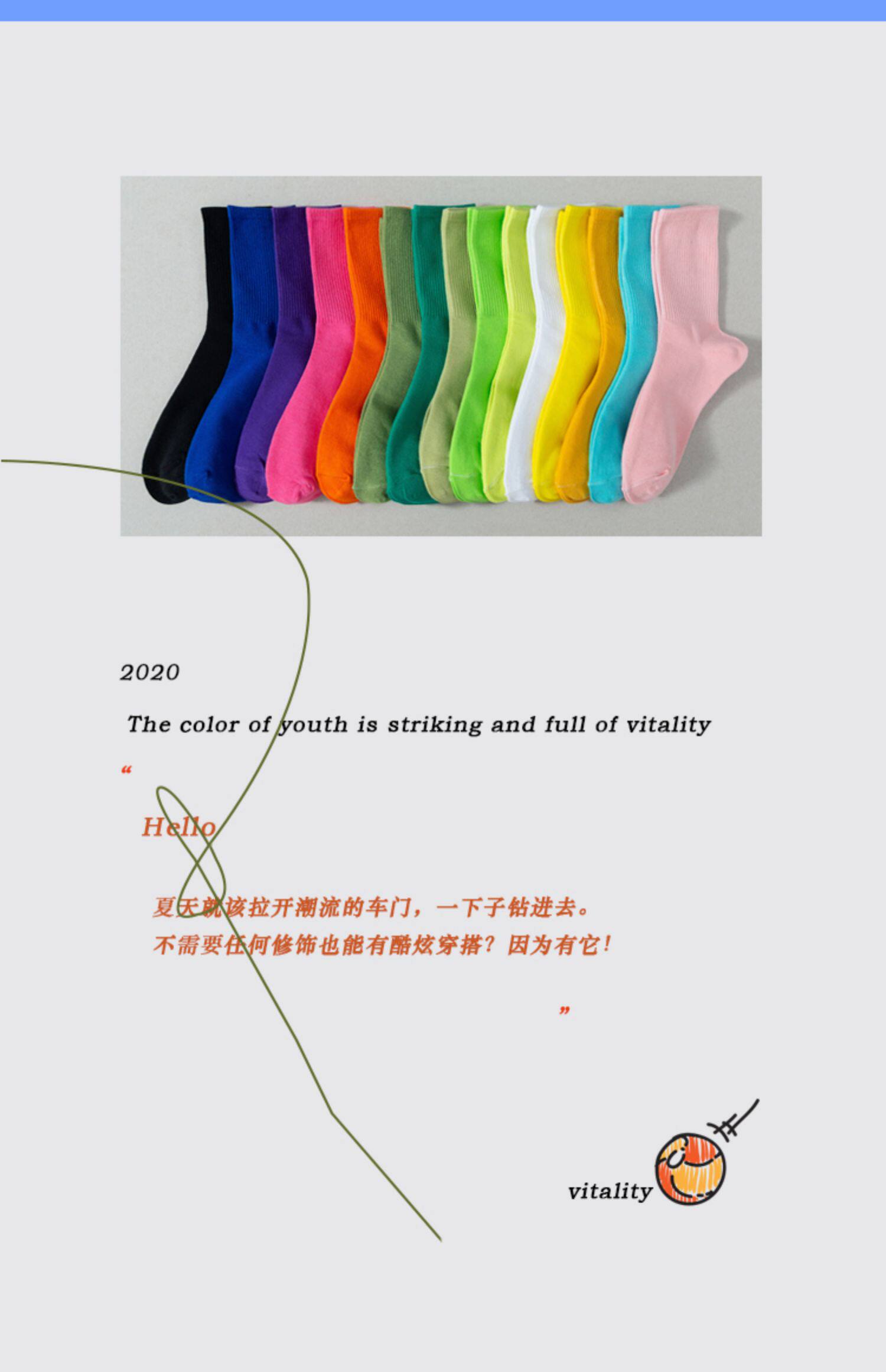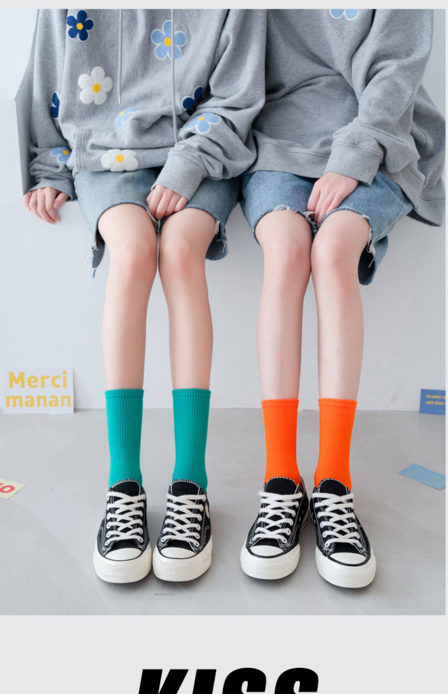 Носки, брендовые летние японские цветные гольфы, средней длины, популярно в интернете