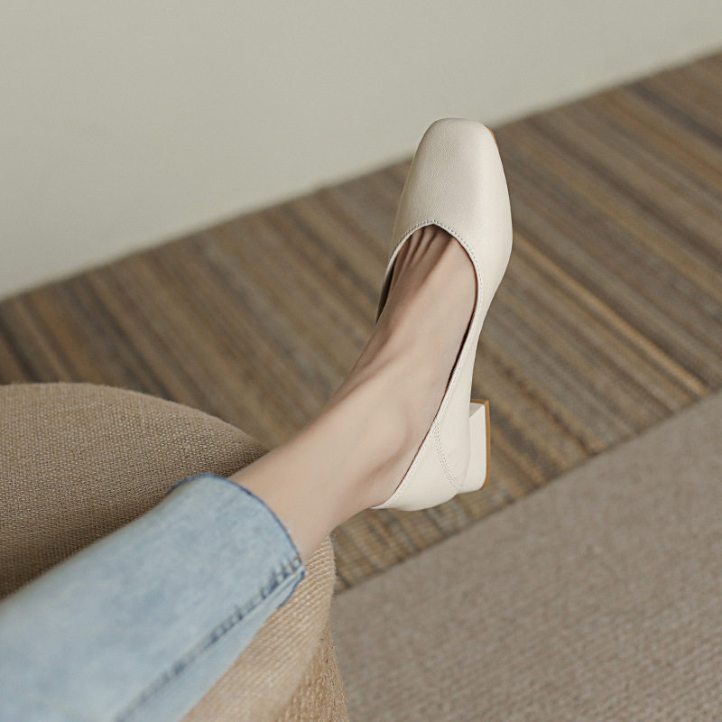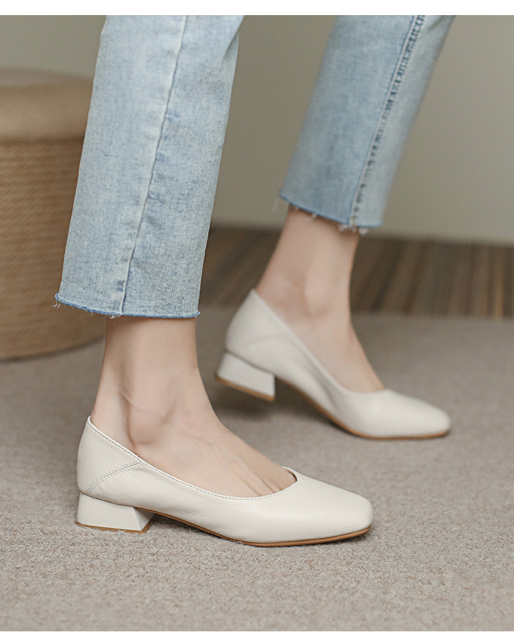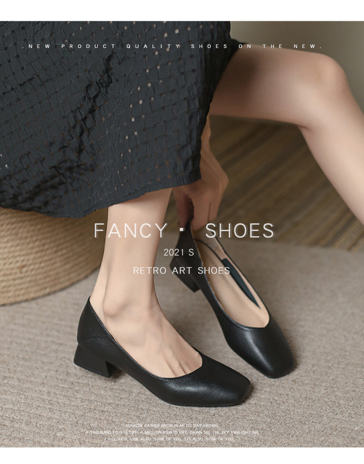 Голова Milan Studio в средней каблуке одиночная обувь женщина 2023 Новая женская обувь повседневная ретро -мягкая кожа бабушка обувь