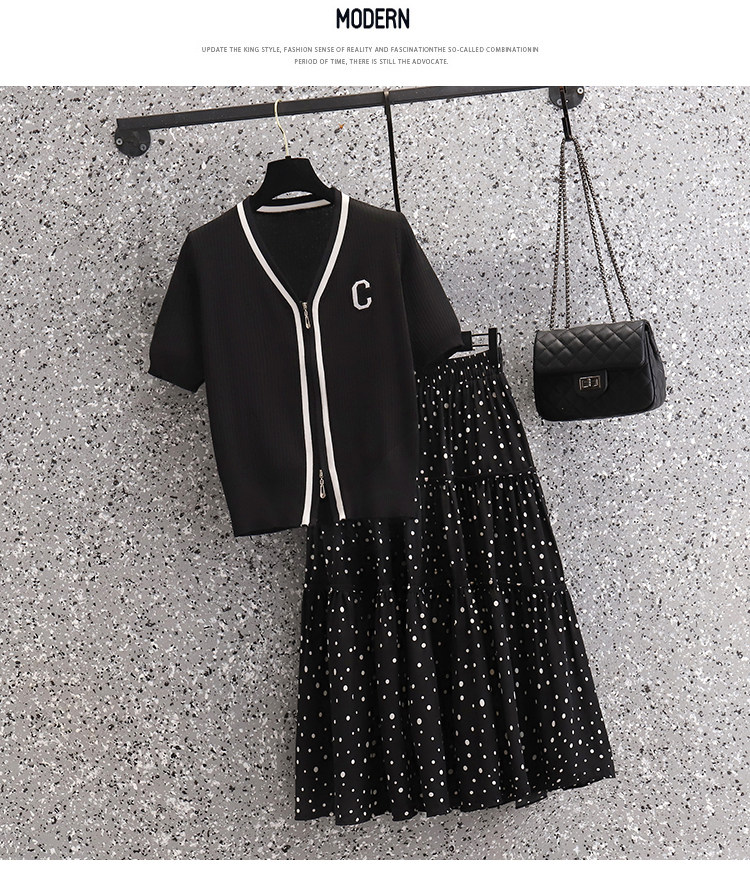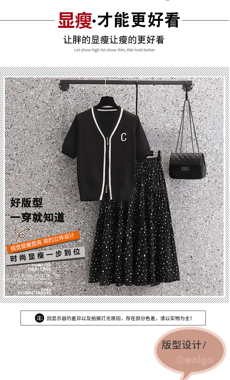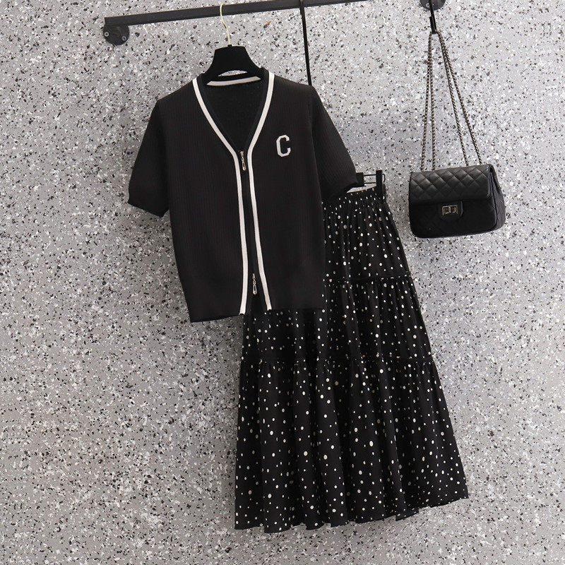 Летняя элитная летняя одежда, трикотажная футболка, юбка, комплект, большой размер, подходит для полных девушек, яркий броский стиль, по фигуре, короткий рукав
