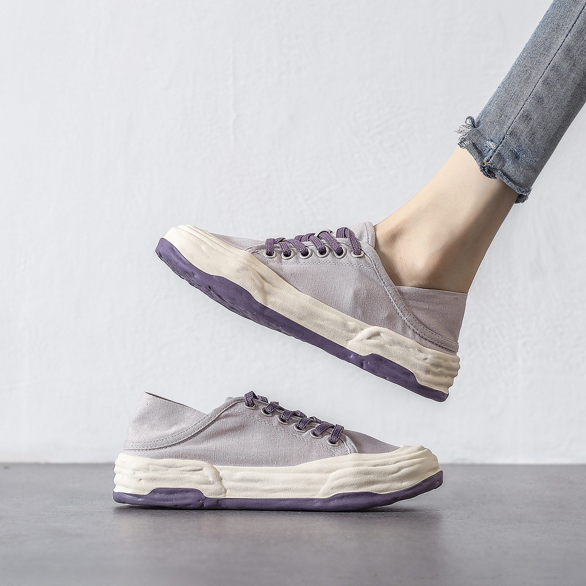 Тканевая обувь, универсальные летние сиреневые кроссовки на платформе, коллекция 2022