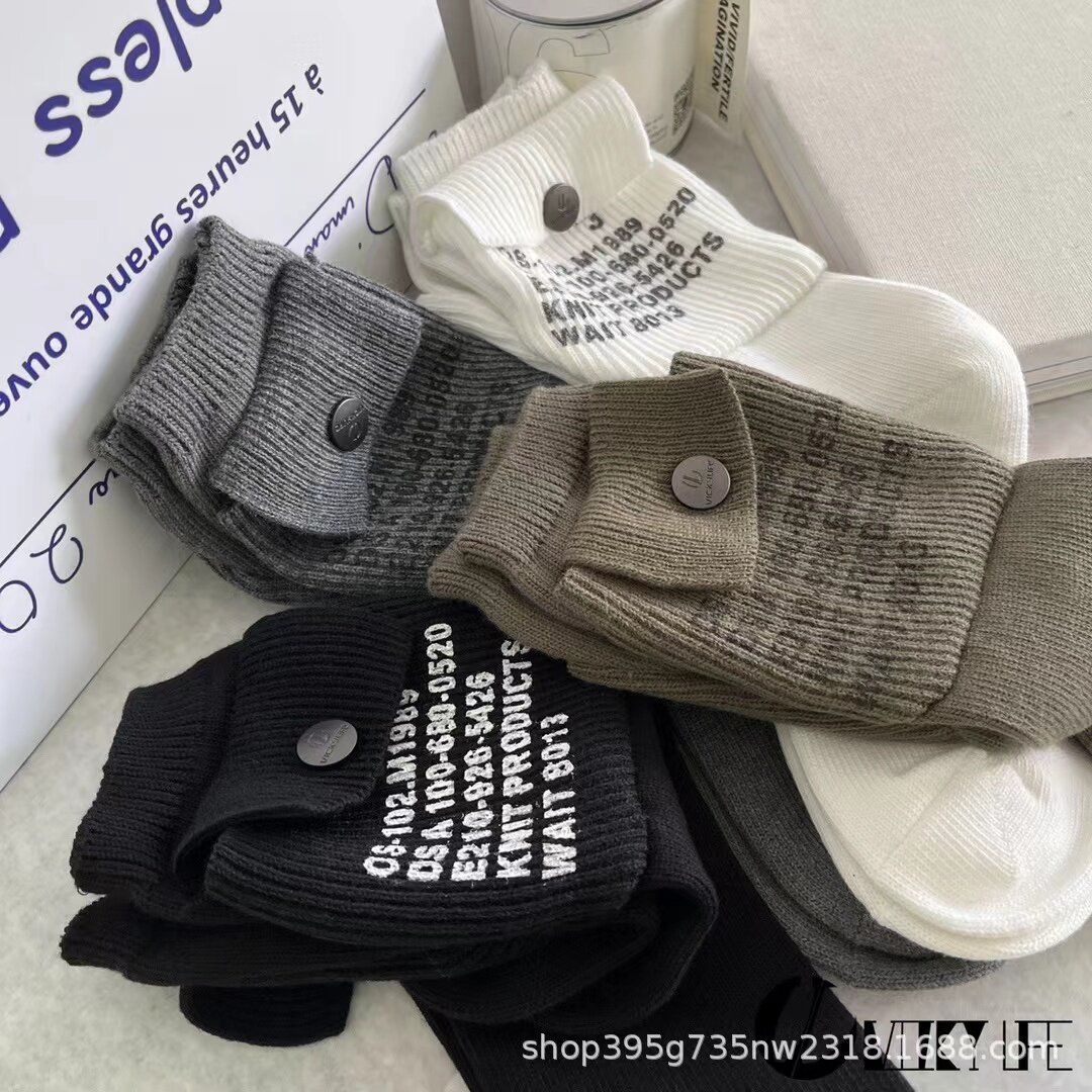 Baibao Box Pocket Носки, европейские супер тяжелые рабочие письма, нишевая дизайн секретная пряжка осень и зимняя грубая куча толстых носков