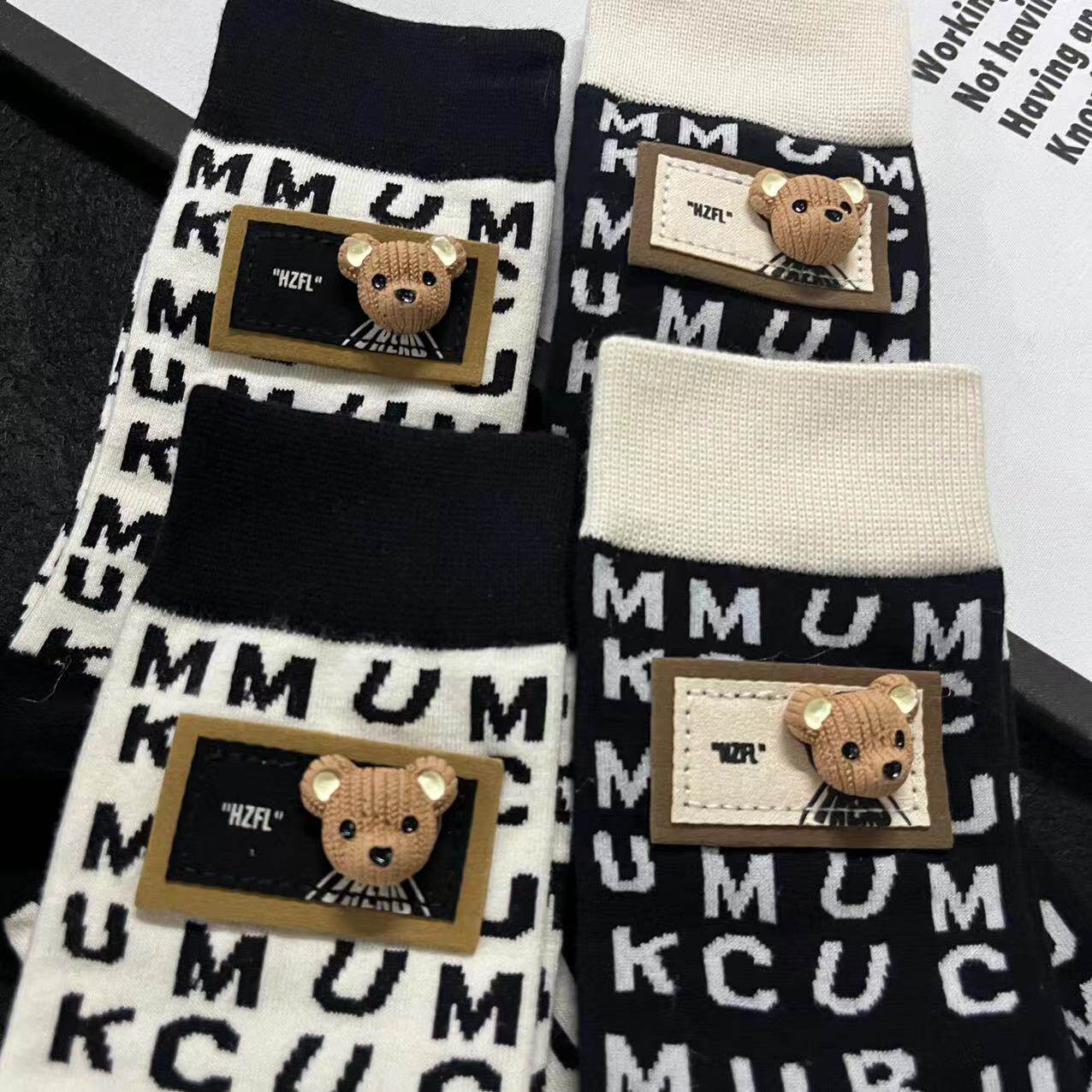 Любимые девушки ~~ Puff Shop Fashion милые черно -белые будские носки для медвежьей носки