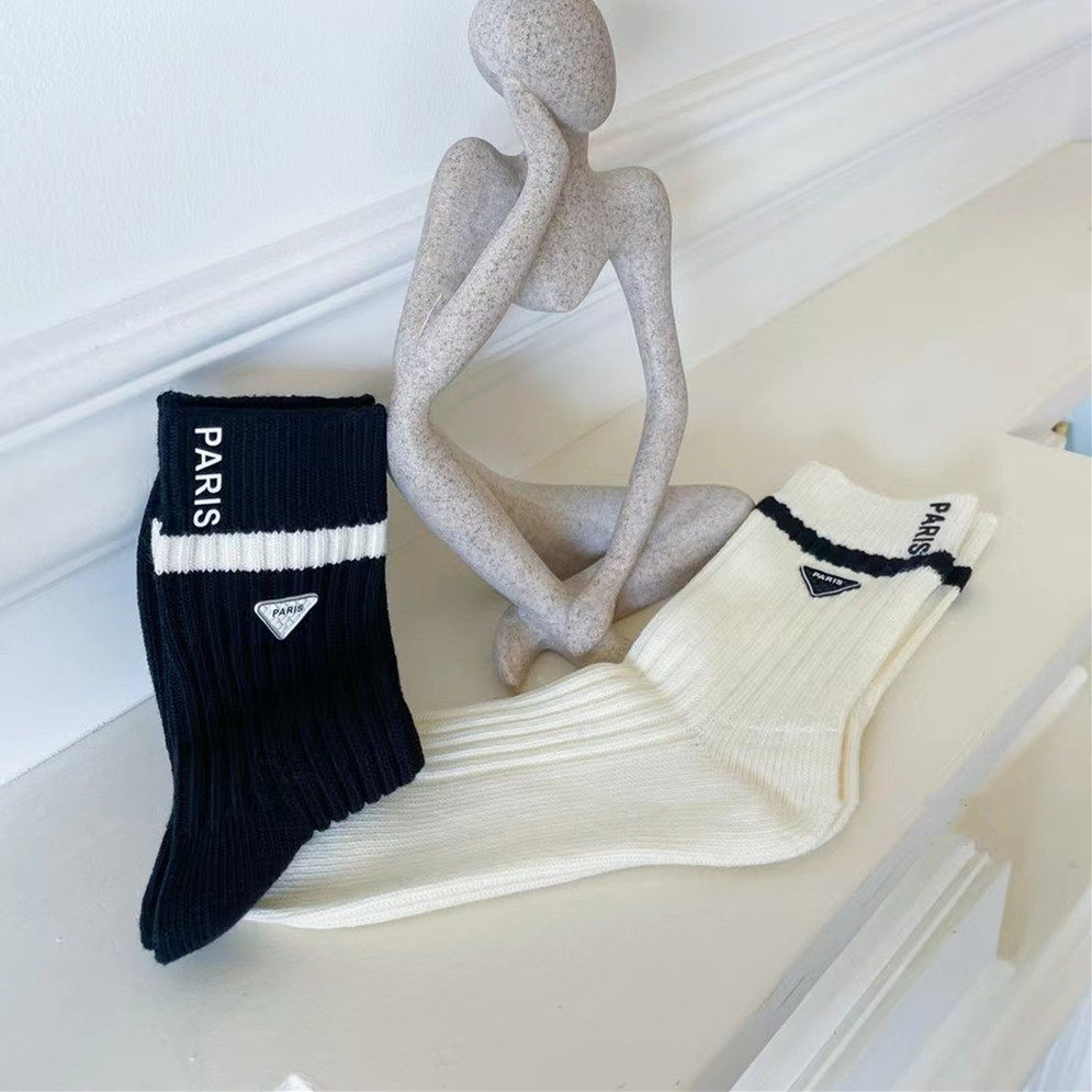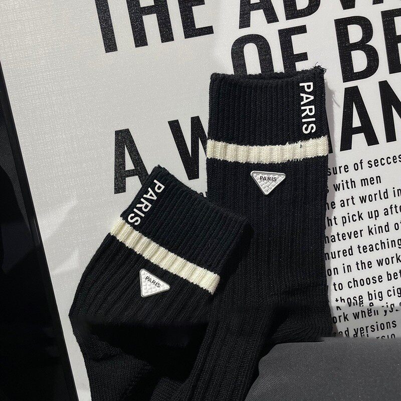 2023 Весна Новые европейские грузовые личности приливные носки носки, иностранная грубая линия, треугольник, красная ниша